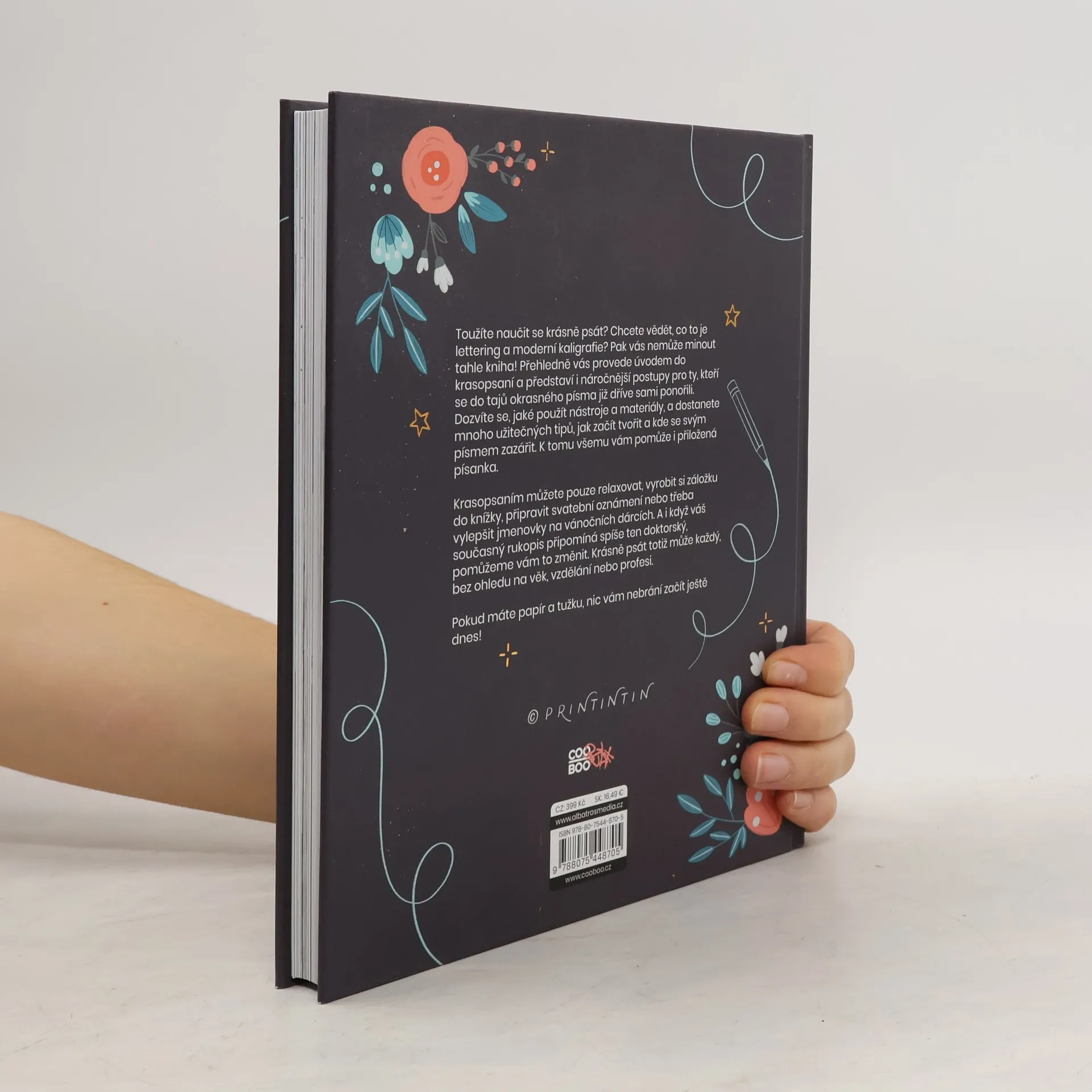 Zajímá vás krasopsaní? Chcete vědět, co to je lettering a moderní kaligrafie? Jaký je mezi tím rozdíl? Pak vás nemůže minout tahle kniha! Kromě základních informací se tu taky dozvíte jak na to, jaké použít nástroje, materiály a zkrátka první tipy jak začít tvořit a dotáhnout svoje psaní k dokonalosti. K tomu všemu vám pomůže i přiložená písanka. A na závěr na vás čekají ukázky konkrétních příležitostí, kdy budete moci svým písmem zazářit. Krasopsaním můžete pouze relaxovat, vyrobit si záložku do knížky, připravit svatební oznámení nebo třeba vylepšit jmenovky na vánočních dárcích. My věříme, že se na následujících stránkách dozvíte cenné informace, popřípadě zdokonalte své vědomosti, vyzkoušíte nové postupy nebo načerpáte dostatek inspirace k vlastnímu tvoření. Tak ořezat tužky a vzhůru do toho!
