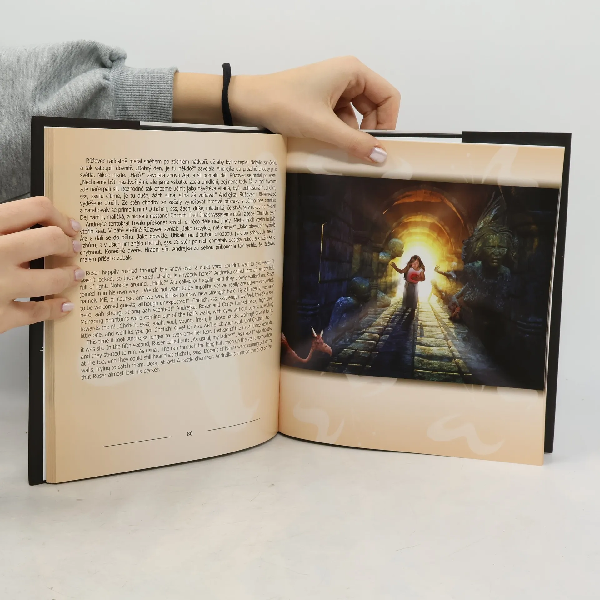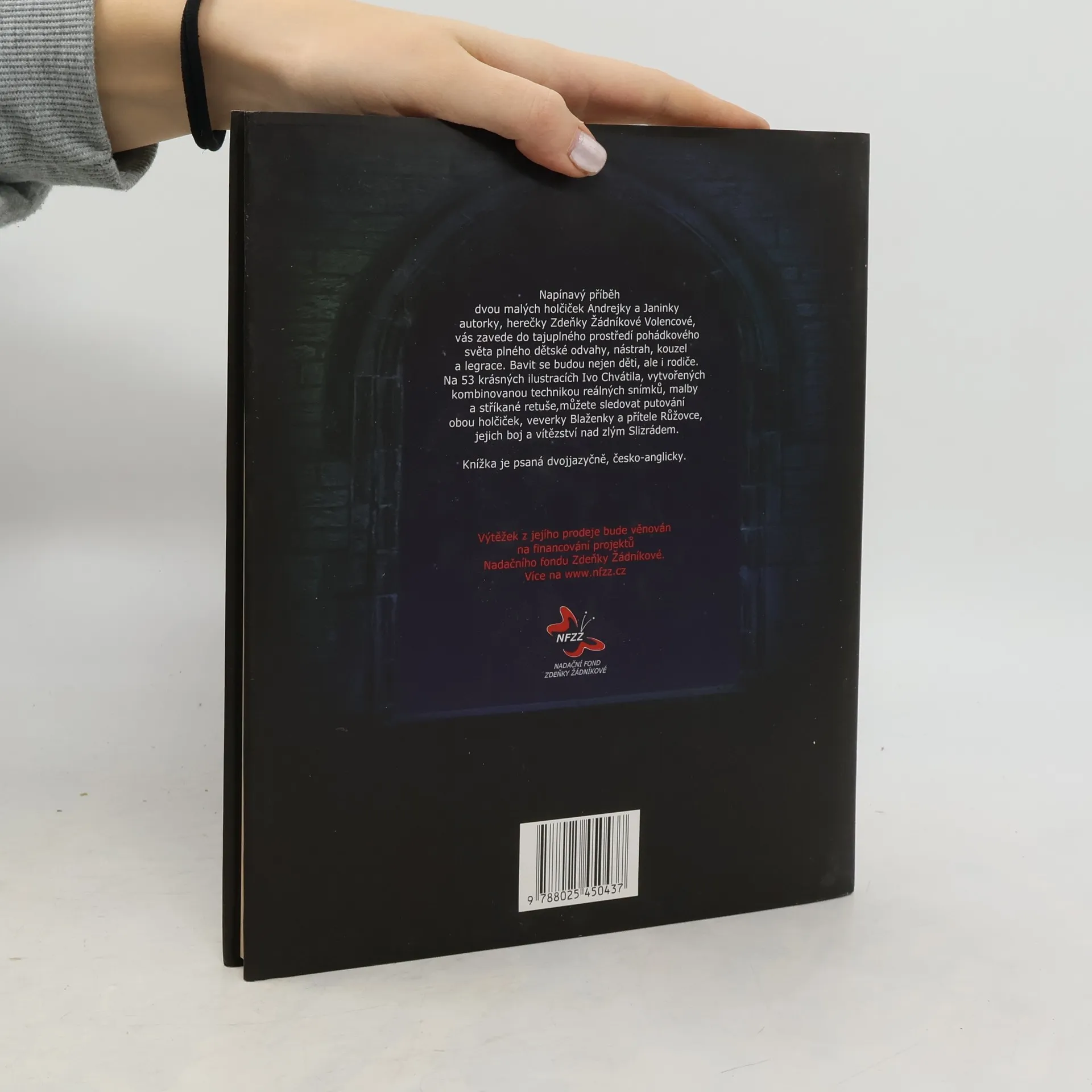 Napínavý příběh dvou malých holčiček Andrejky a Janinky autorky herečky Zdeňky Žádníkové vás zavede do tajuplného prostředí pohádkového světa plného dětské odvahy, nástrah, kouzel a legrace. Bavit se budou nejen děti, ale i rodiče. Na 52 krásných ilustracích Ivo Chvátila, vytvořených kombinovanou technikou reálných snímků, malby a stříkané retuše můžete sledovat putování obou holčiček, veverky Blaženky a přítele Růžovce, jejich boj a vítězství nad zlým Slizrádem. Knížka je psaná dvojjazyčně, česko-anglicky.