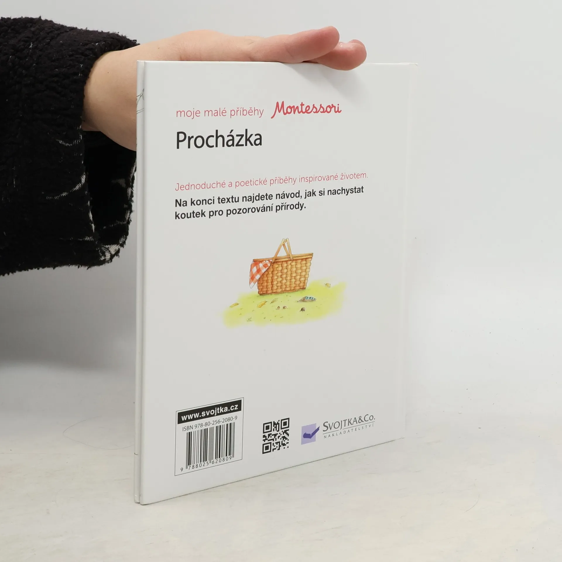Krátký, jednoduchý příběh s poetickými ilustracemi je inspirovaný každodenním životem a situacemi, s nimiž se dítě běžně setkává. V tomto díle se Ema s Lindou a svými rodiči vypraví na procházku do blízkého lesíka. Prohlížejte si, čtěte a povídejte si s dětmi o tom, co holčičky vidí okolo sebe – zvířata, rostliny. Co dobrého si dají na závěrečném pikniku? Nakonec se s dětmi vypravte na podobnou procházku. Inspirovat se můžete i činností, kterou na konci příběhu najdete, a běžnou procházku proměnit v objevitelskou výpravu. Jednoduchý a konkrétní příběh je v souladu s pedagogikou Montessori, díky níž děti poznávají okolní svět i samy sebe, získávají sebedůvěru i schopnost pozorovat a vnímat své okolí. Knížka s prvky Montessori.