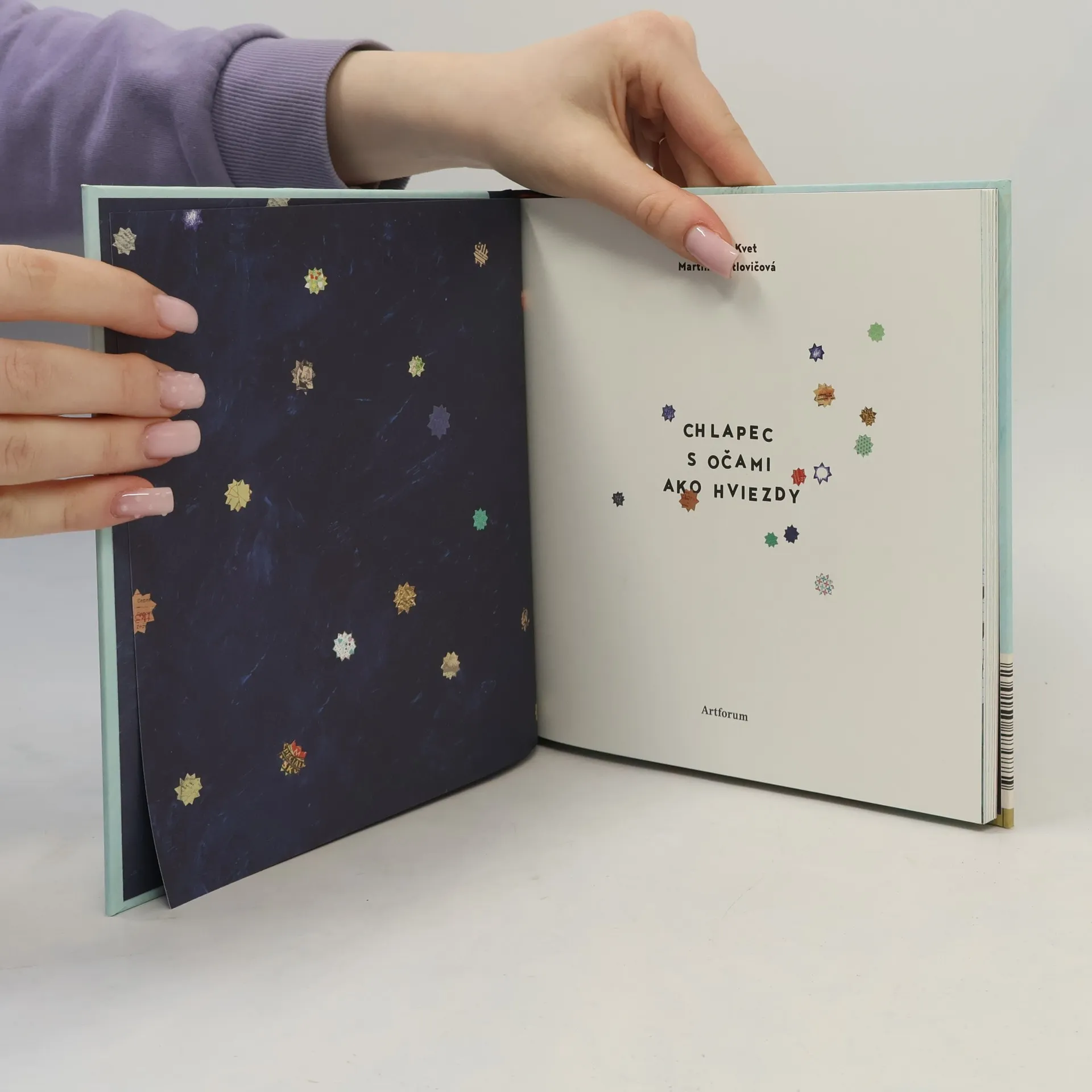 Chlapec s očami ako hviezdy nemá meno. V celej knihe veľa o sebe neprezradí, vlastne takmer nič. Nikto netuší odkiaľ prišiel, ani kam má namierené. Je to však zvedavý chlapec, ktorý rád kladie otázky. Putuje krajinou, ktorá je rovnako záhadná ako on sám. Ocitol sa v nej vďaka pestrofarebnému motýľovi, ktorý sa stane jeho spoločníkom a sprevádza ho na ceste plnej prekvapení a nečakaných stretnutí. V tejto knihe majú malí čitatelia možnosť zoznámiť sa s niektorými hrdinami slovenských rozprávok, na ktorých si ich rodičia a starí rodičia budú určite ešte pamätať.