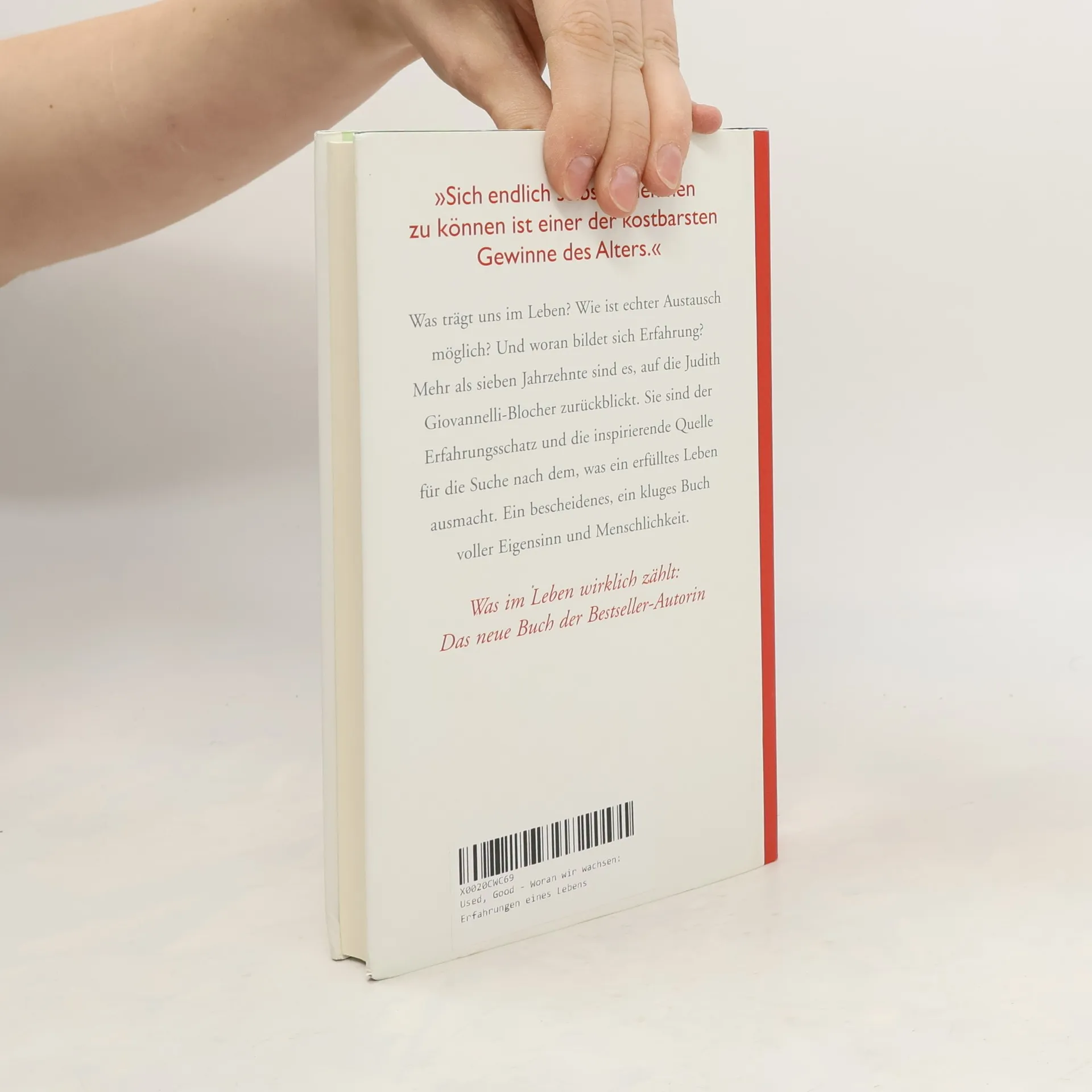 Was trägt uns im Leben? Wie sit echter Austausch möglich? Und woran bildet sich Erfahrung? Mehr als sieben Jahrzehnte sind es, auf die Judith Giovannelli-Blocher zurückblickt. Sie sind der Erfahrungsschatz und die inspiriende Quelle für die Suche nach dem, was ein erfülltes Leben ausmacht. Ein bescheidenes, ein kluges Buch voller Eigensinn und Menschlichkeit.