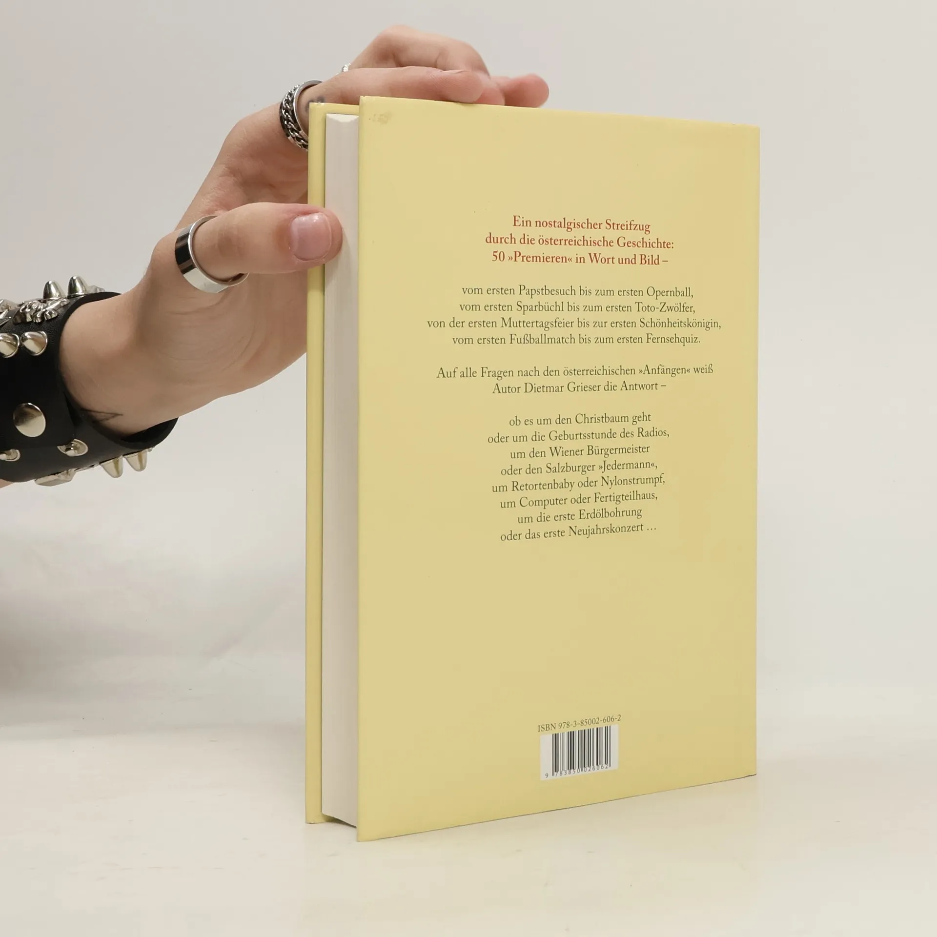 Ein nostalgischer Streifzug durch die österreichische Geschichte - 50 „Premieren“ in Wort und Bild: vom ersten Papstbesuch bis zum ersten Opernball, vom ersten Sparbüchl bis zum ersten Toto-Zwölfer, von der ersten Muttertagsfeier bis zur ersten Schönheitskönigin und vom ersten Fußballmatch bis zum ersten Fernsehquiz. Auf alle Fragen nach den österreichischen „Anfängen“ weiß Autor Dietmar Grieser die Antwort - ob es um den Christbaum geht oder um die Geburtsstunde des Radios, um den Wiener Bürgermeister oder den Salzburger „Jedermann“, um Retortenbaby oder Nylonstrumpf, um Computer oder Fertigteilhaus, um die erste Erdölbohrung oder das erste Neujahrskonzert.
