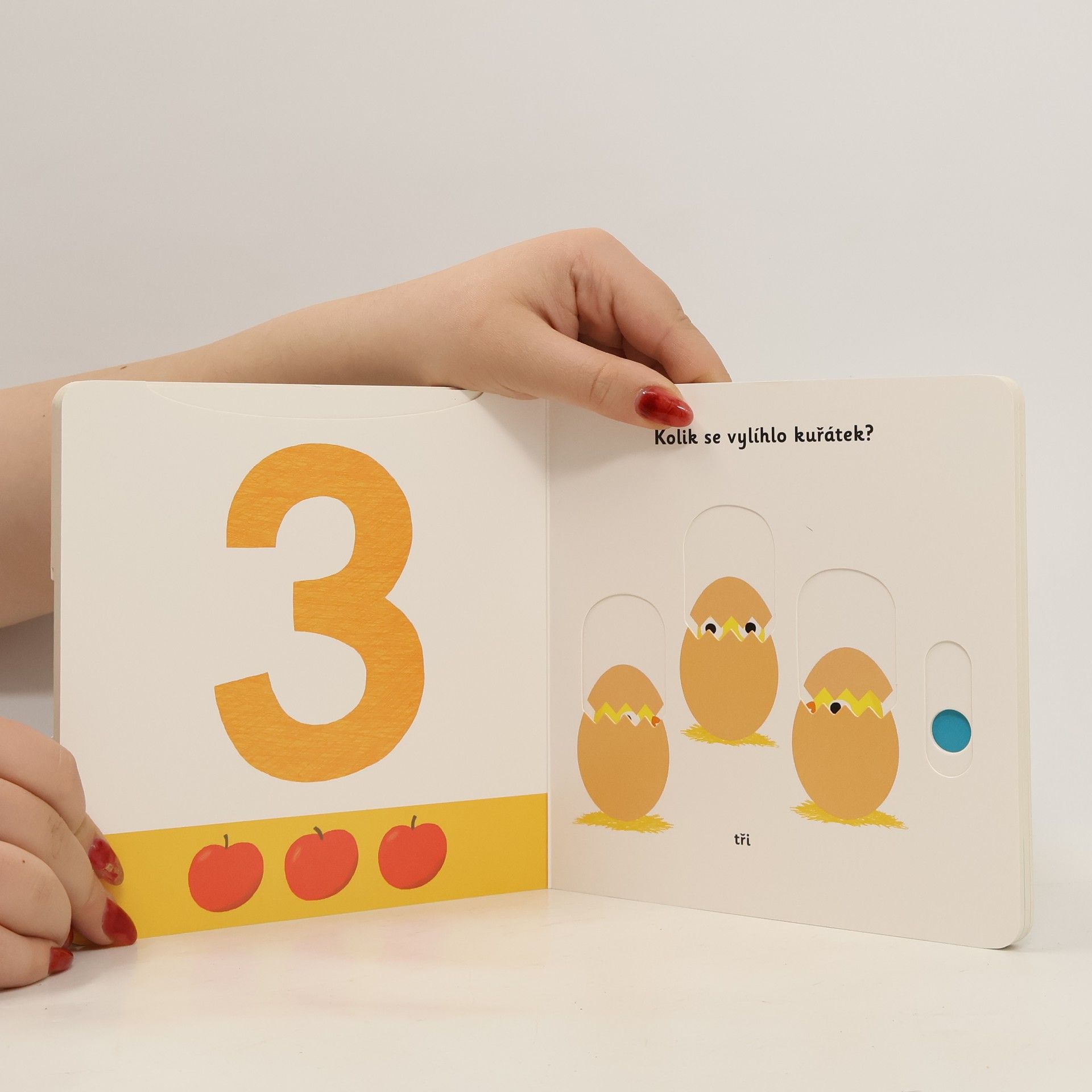 Nauč se počítat od 1 do 5! Leporelo pro nejmenší děti s posuvnými prvky a pestrými ilustracemi. Kolik se vylíhlo kuřátek? Kolik myšek okusuje sýr? Kolik motýlků vyletí zpoza keře? Spočítej všechna zvířátka a nauč se čísla od jedné do pěti! Pestrobarevné ilustrace a posuvné prvky v tomto leporelu učí děti počítat zábavnou formou. Pohyblivé elementy v této knize rozvíjí jemnou motoriku dítěte a přispívají k živosti ilustrací.