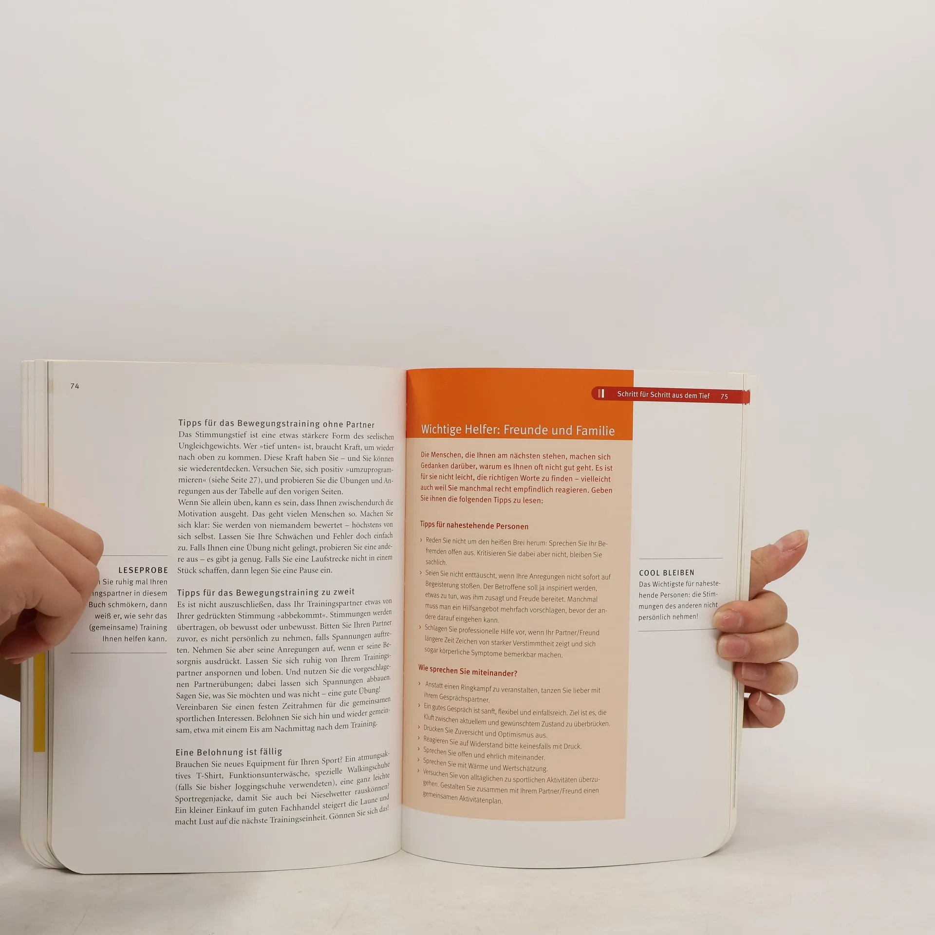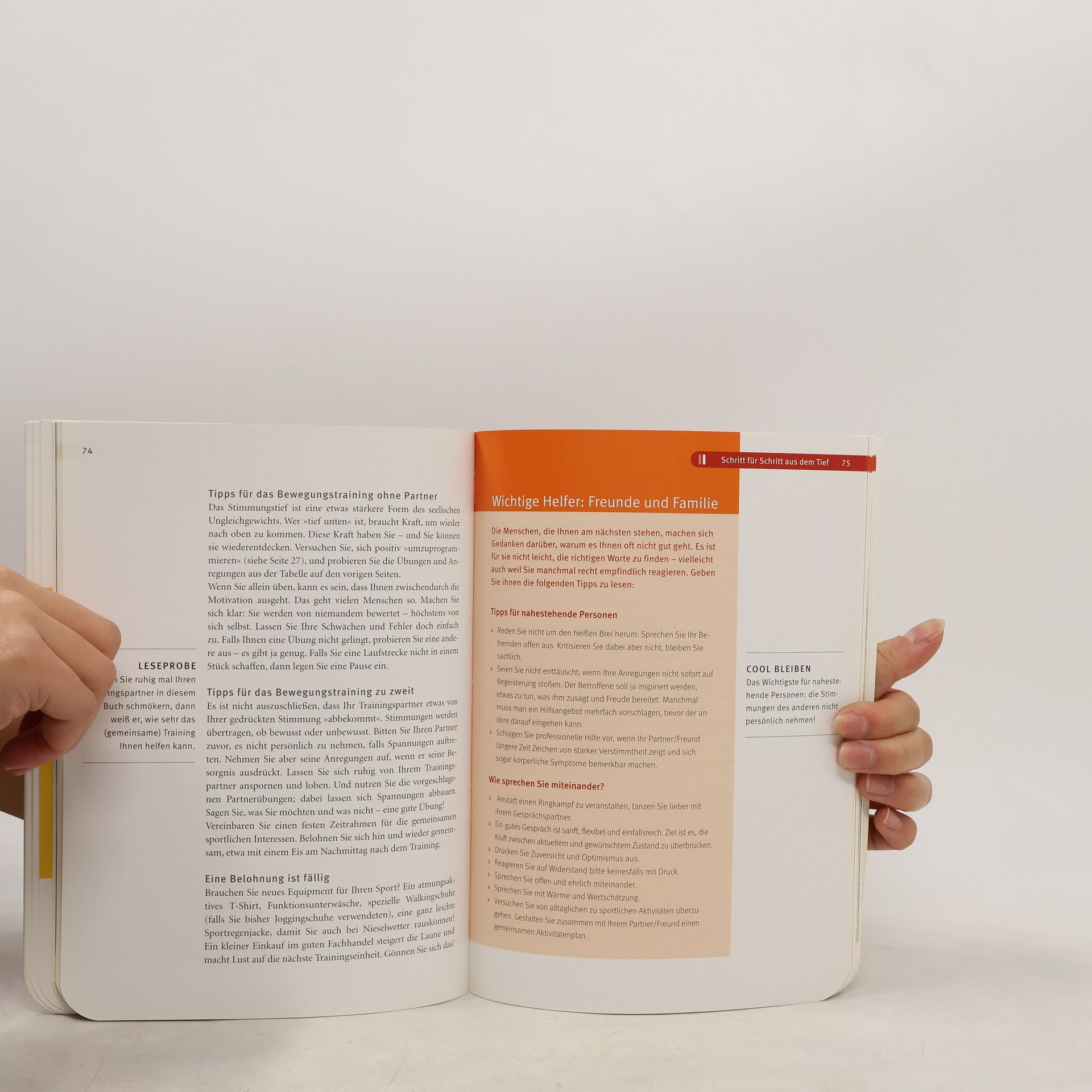 Etwa vier Millionen Menschen leiden in Deutschland an Stimmungsschwankungen, oftmals ohne sich bewusst zu werden, welchen destruktiven Einfluss das auf ihr Leben hat. Die Idee dieser neuartigen Therapieform beruht auf der Erkenntnis, dass Bewegung antidepressiv wirkt. Das ganzheitliche Konzept stützt sich auf drei Säulen: Bewegung, Eigeninitiative und Positive Psychologie. Neu ist die erprobte Zuordnung bestimmter Übungen und Übungsfolgen nach Persönlichkeitstyp und Schwere der Verstimmung. Ein differenziertes Sportangebot hilft dem Leser eine geeignete Bewegungsform zu finden, die ihm Spaß macht und die auf seine Belastbarkeit zugeschnitten ist. Einfache Übungen und Anleitungen verschaffen schnell erste Erfolge und motivieren zum Weitermachen. Der Ratgeber bietet somit eine wirkungsvolle Kombination sportwissenschaftlicher und psychologischer Erkenntnisse und baut den Leser nicht nur körperlich, sondern auch mental wieder auf.