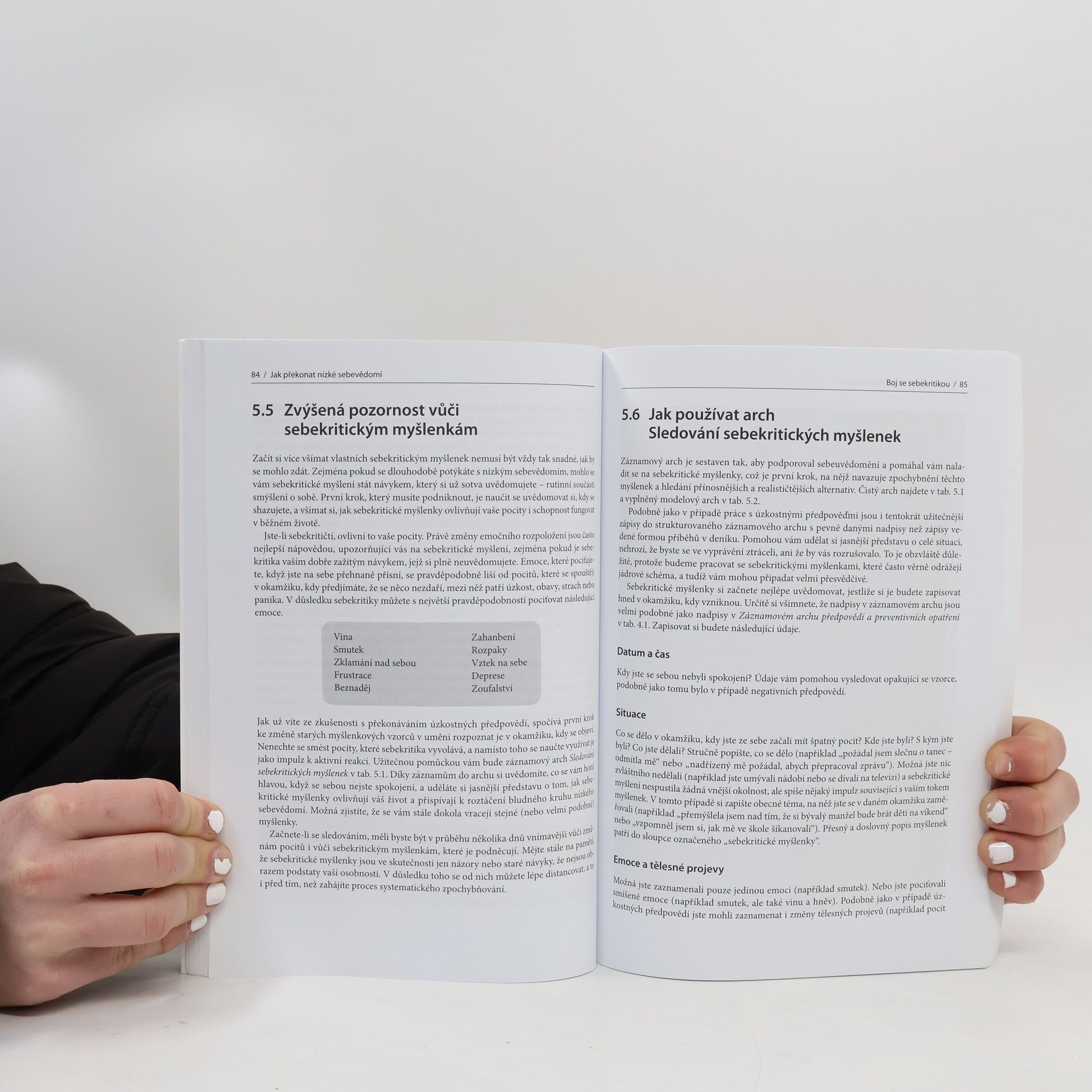 Tato knížka vám pomůže vymanit se z bludného kruhu negativního vnímání sebe sama, naučí vás umění sebepřijetí a umožní změnit váš život k lepšímu. Díky ní pochopíte váš stav a podstatu nízkého sebevědomí, přehnané sebekritiky a sebedestruktivního myšlení: naleznete důvod jejich vzniku a zjistíte, co je udržuje. Objevíte své nejdůležitější škodlivé myšlenky, pravidla a přesvědčení a zjistíte, jakými vhodnými alternativami je můžete nahradit. Knížka je klasikou svépomocné literatury a je velmi oceňovaná pro svůj praktický a uživatelsky přívětivý přístup. Obsahuje kompletní svépomocný program, založený na klinicky ověřených technikách kognitivně-behaviorální terapie, včetně nápomocných záznamových listů. Kognitivně-behaviorální terapie léčí emocionální poruchy změnou negativních vzorců myšlení. Jde o mezinárodně uznávanou klíčovou metodu, která pomáhá překonat dlouhodobá onemocnění, jako jsou záchvaty paniky, deprese, úzkost, závislosti a některé poruchy příjmu potravy. Pro svůj nezvratně přínosný dopad je tato kniha doporučována nejen samotnými odborníky, ale také britskou Národní zdravotní službou (National Health Service).