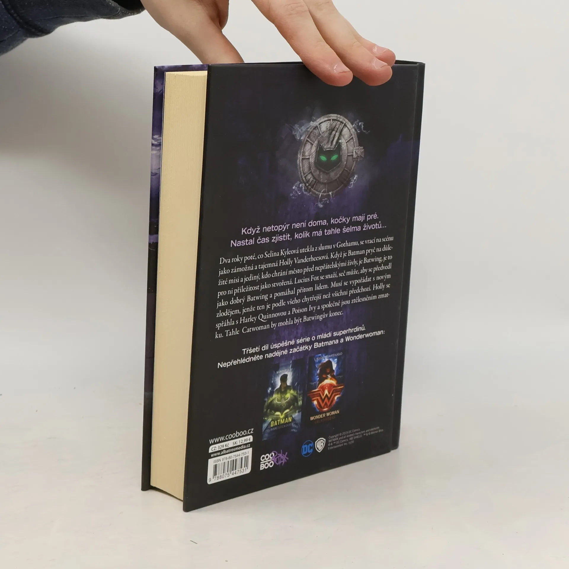 Po Wonder Woman a Batmanovi přichází třetí díl úspěšné série o mládí superhrdinů. Kočičí žena z pera bestsellerové Sarah J. Maasové. “ Je čas zjistit, kolik životů tahle kočka vlastně má. Selina Kyleová se po dvou letech vrací do Gothamu, ovšem tentokrát jako Catwoman. Hraje nebezpečnou hru na kočku a myš, domlouvá zvláštní spojenectví, v noci se zaplétá s Batwingem a ve dne s pekelně krásným sousedem Luciusem Foxem. Přestože si myslí, že své minulosti unikla, šeredně se mýlí. Zvládne obětovat to, co je jejímu srdci nejbližší?