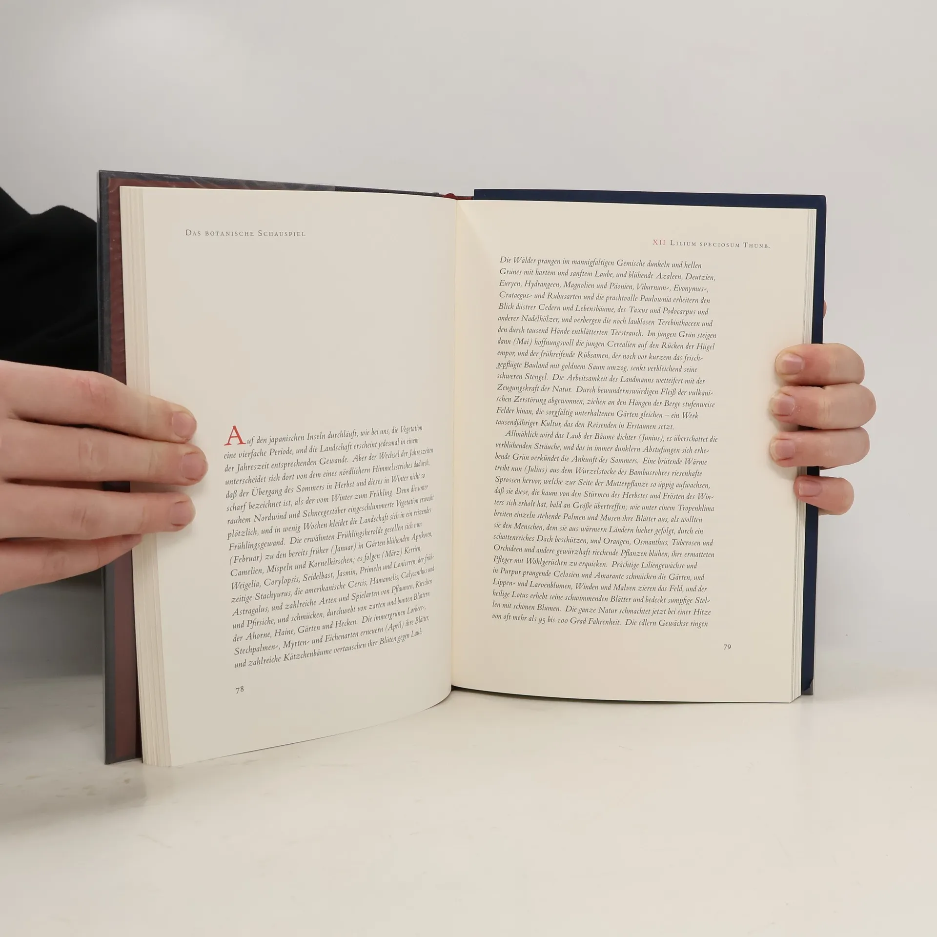 Nach ihrem wunderschönen, naturgeschichtlich wie künstlerisch gleichermaßen faszinierenden Buch ›Von seltenen Vögeln‹ erscheint nun Anita Albus’ ›Botanisches Schauspiel‹ ebenfalls in bibliophiler Ausstattung. Vierundzwanzig Blumen-Porträts, in Aquarell gemalt, in Texten beschrieben, von Zitaten begleitet – ein Zaubergarten! Vierundzwanzig Blumen sind die Darsteller in diesem ›Botanischen Schauspiel‹; der Schauplatz wechselt von Europa nach Vorderasien und Afrika, führt von Britisch-Kolumbien nach Mittel- und Südamerika, zeigt ausgiebig das Panorama Ost-Asiens; gespielt wird ›Die Verwandlung des Blatts‹; erzählt wird das Schicksal jeder Blume und das jener Menschen, die sie auf ihrem Weg aus der Wildnis in die Gärten der Fremde begleitet haben: Pflanzenjäger und Forschungsreisende, Botaniker und Gärtner, Maler und Liebhaber.