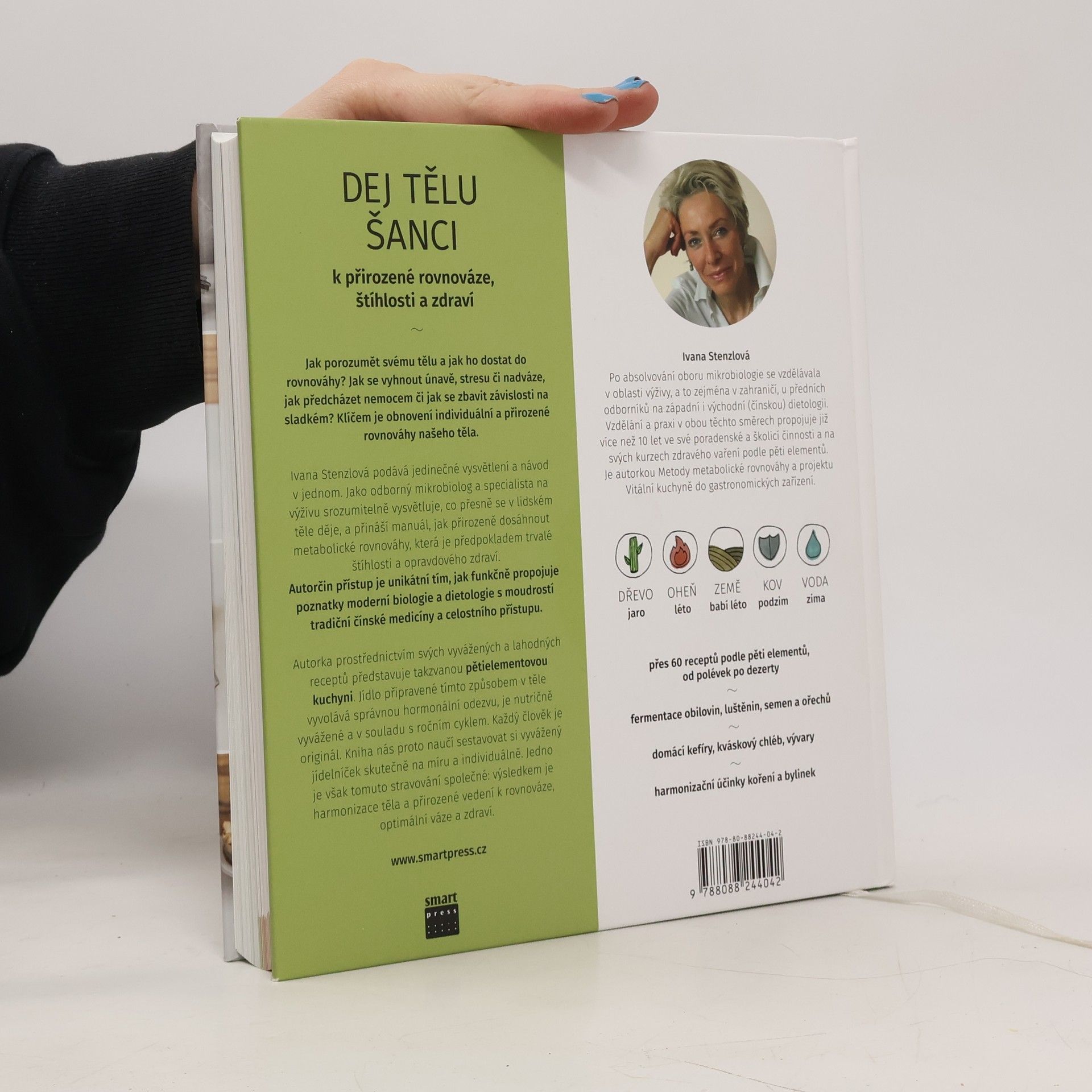 Kniha propojuje tradiční čínskou medicínu s poznatky moderní západní dietologie a biologie. Přináší zároveň nový způsob vaření, který je postavený na přípravě pokrmů s harmonizačním účinkem. Přes 60 originálních tzv. pětielementových receptů pokrývá všechna roční období, od snídaně po večeře, od polévek po dezerty. Nechybí ani základní recepty na domácí kváskový chléb, rostlinná mléka či zdravé domácí fermentované nápoje (kefíry) a postupy pro fermentaci obilnin a luštěnin.