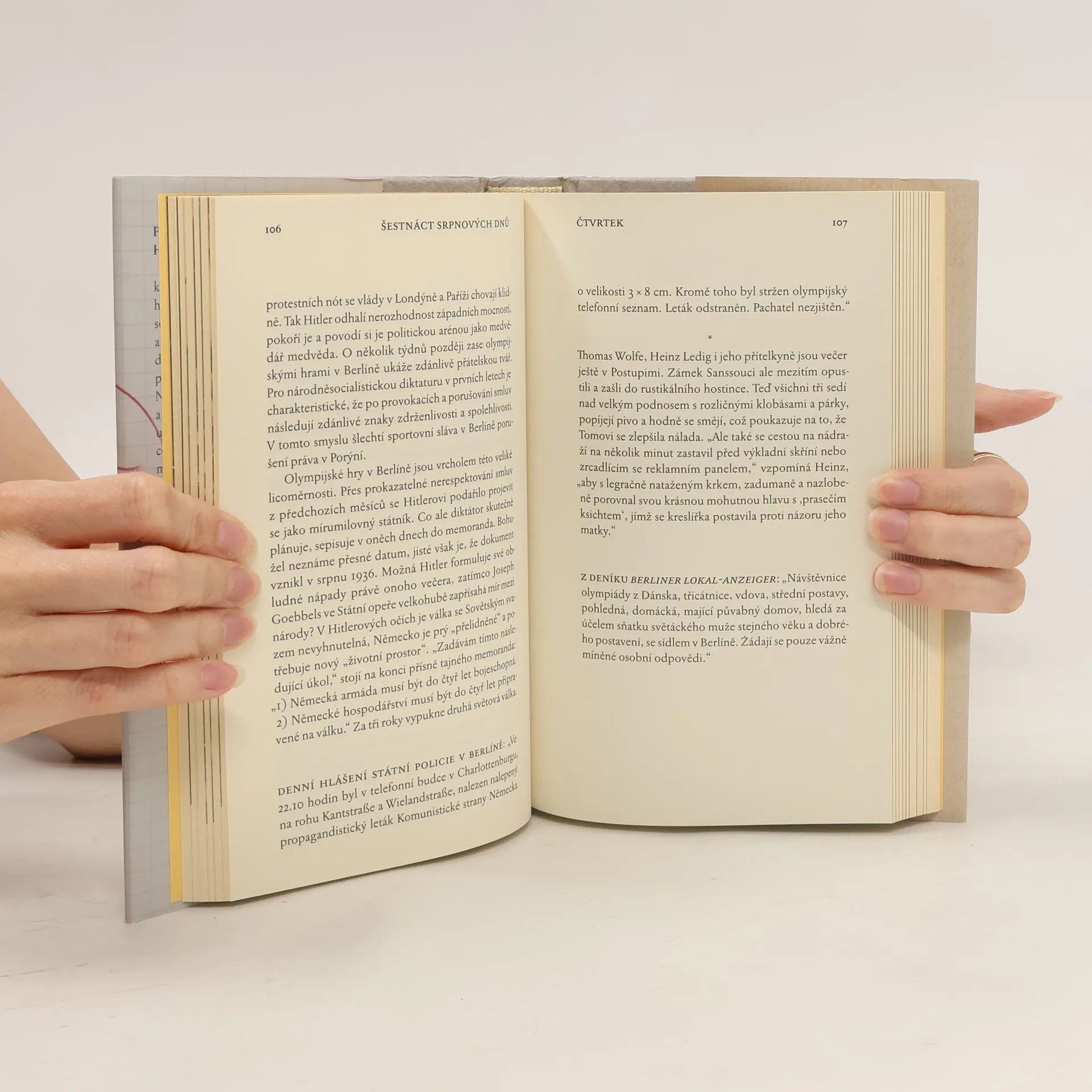 Příběh o šestnácti dnech Hitlerovy olympiády. V létě 1936 se v Berlíně všechno točí kolem olympijských her. Desetitisíce lidí proudí do německého hlavního města, které chtějí národní socialisté prezentovat jako světovou a otevřenou metropoli. Oliver Hilmes sleduje prominentní i zcela neznámé osoby, Němce i zahraniční hosty na stadionech i v ulicích, které žijí nejen sportovní událostí. Na krátkou chvíli zmizely cedule zakazující Židům to či ono, místo nacistické hymny Horsta Wessela zní jazz. Jako by se Berlín změnil na úplně normální evropské velkoměsto. Jenže nacistický režim v pozadí dál pracuje na tom, aby ovládl veškeré dění v zemi. V knize Berlín 1936 vypráví Oliver Hilmes o atmosféře města, kde se po čtrnáct dní setkávali nejlepší světoví sportovci, diplomaté a nacističtí pohlaváři, stejně jako transvestité, prostituti, majitelé restaurací, Berlíňané i turisté. Jsou to příběhy, které nás fascinují a překvapují, ale z nichž nás také mrazí.
