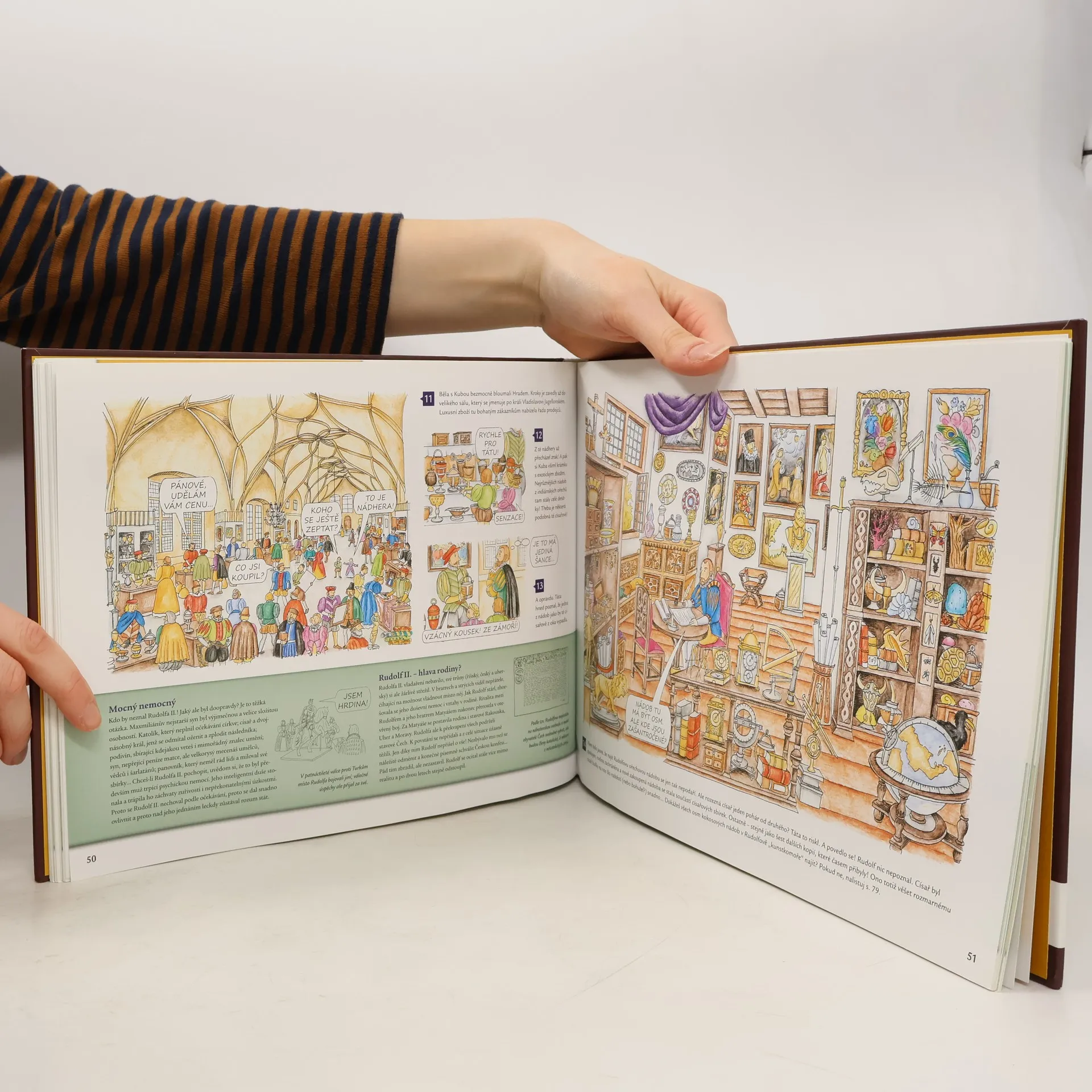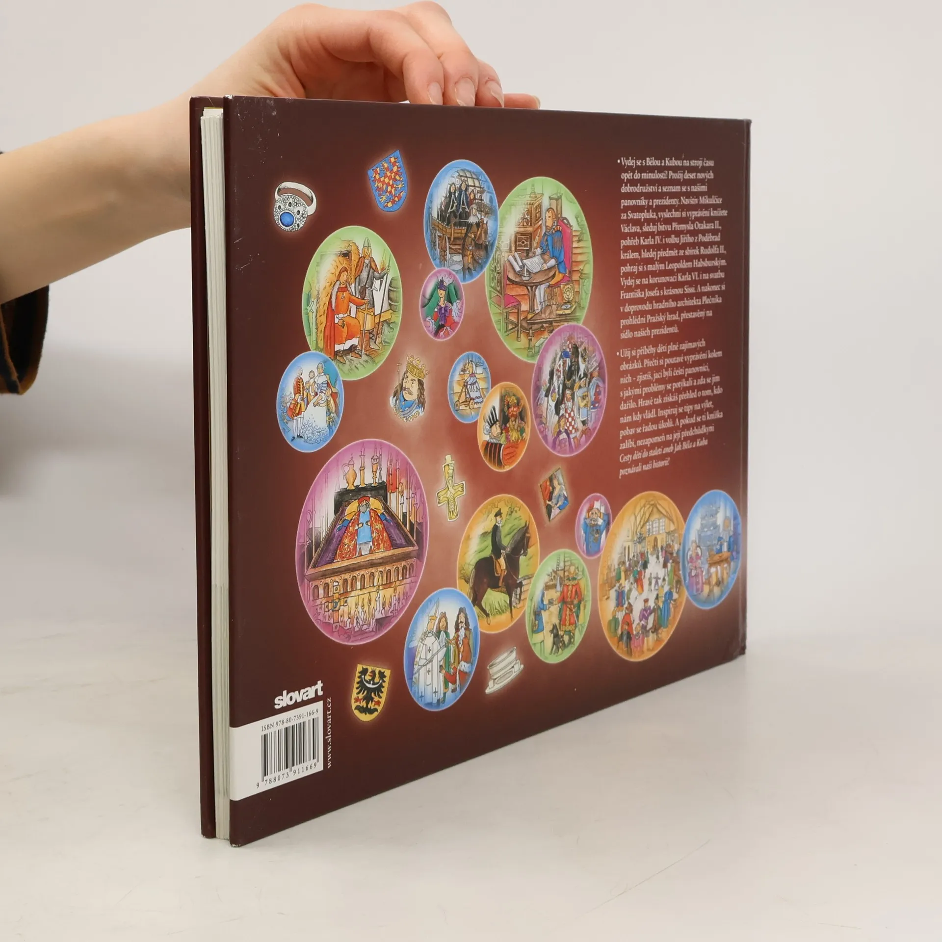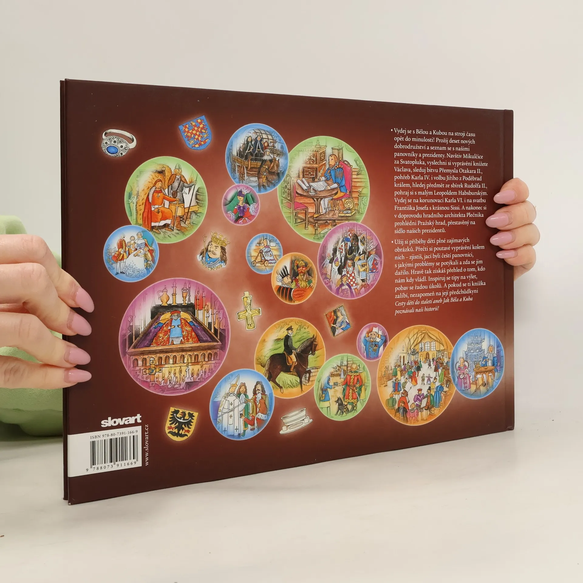 První díl Cesty dětí do staletí aneb Jak Běla a Kuba poznávali naši historii se dostal do výběru Nejlepší knihy dětem za rok 2012/2013. A je tu pokračování putování Běly a Kuby pomocí stroje času do minulosti naší země! Zatímco v předchozí knížce děti poznávaly všední život („jak se u nás tehdy žilo"), nyní se seznamují s panovníky a prezidenty. Kdo a jak u nás v jednotlivých stoletích vládl? Jak se proměňovaly formy vlády v Čechách a na Moravě od raného středověku po 20. století? Běla a Kuba se například setkají s knížetem Svatoplukem, pečou oplatky s knížetem Václavem, zažijí pohřeb Karla IV., jsou svědky volby Jiřího z Poděbrad králem, octnou se na dvoře Rudolfa II., účastní se korunovace Karla VI. a Alžběty Kristýny či svatby Františka Josefa I. nebo navštíví na Hradě T. G. Masaryka. Kniha dodržuje osvědčenou koncepci prvního dílu - kromě bohatě ilustrovaného kresleného příběhu, v němž Běla a Kuba prožívají nevšední dobrodružství, tvoří každou kapitolu čtivé a srozumitelné doprovodné texty, doplňkové rámečky, tipy na výlet i nejrůznější zábavné úkoly a hříčky. Kniha je určena především žákům druhého stupně základních škol, ale díky velkému podílu nádherných a dějově plných ilustrací si na své přijdou i děti mnohem mladší.