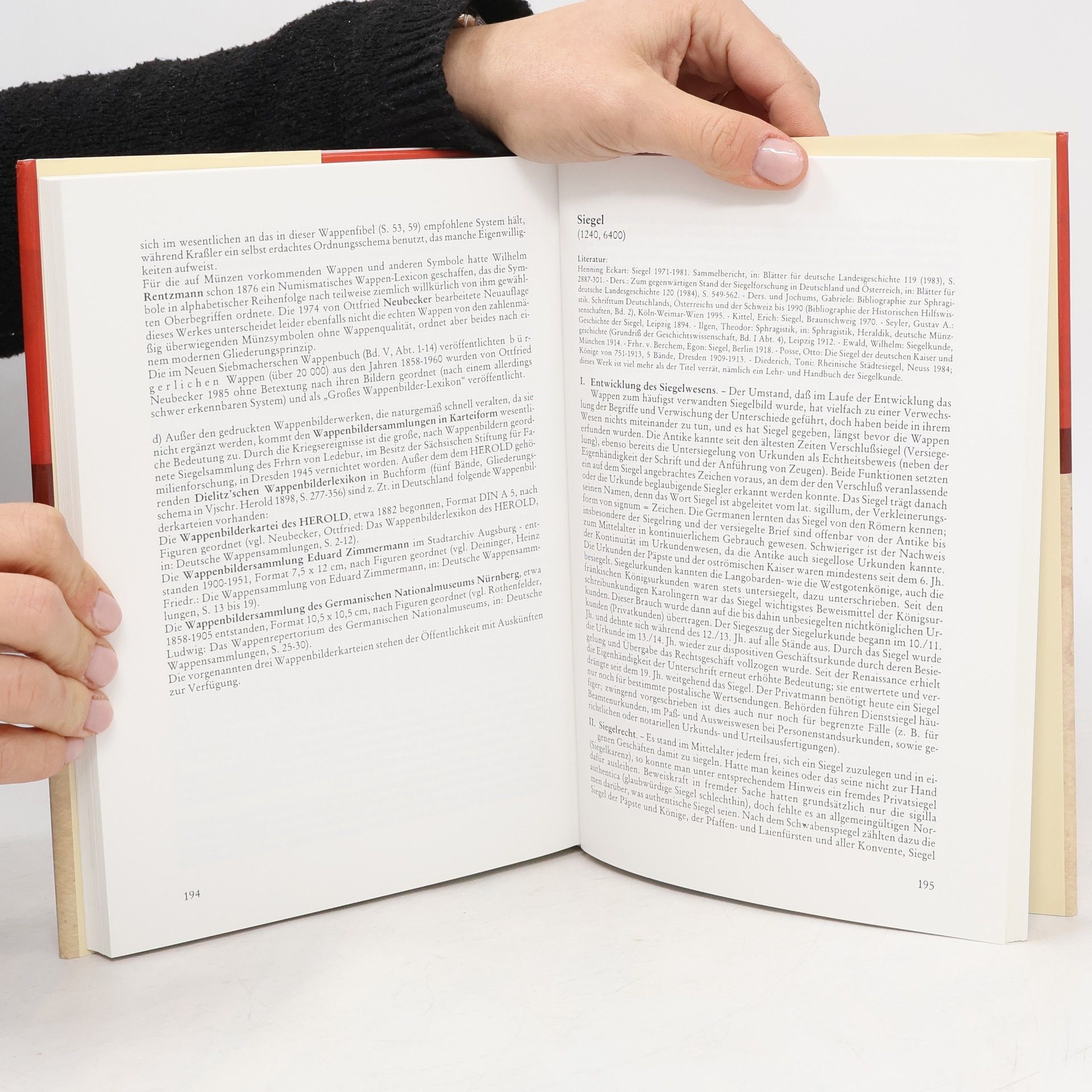 Das Standardwerk behandelt diejenigen Fragen, die in der heraldischen Praxis immer wieder aufgeworfen werden: Grundsätze für die Schaffung neuer Wappen, Deutung alter Wappen, Berechtigung zur Führung von Wappen namensgleicher Familien, Unterscheidungskraft der Wappen, Wappenschwindel früher und heute. Auch alle Forscher, die bisher nur genealogisch interessiert waren, finden in diesem Handbuch der Heraldik die Verbindung zu ihrer Arbeit und eine willkommene Ergänzung ihres Fachwissen