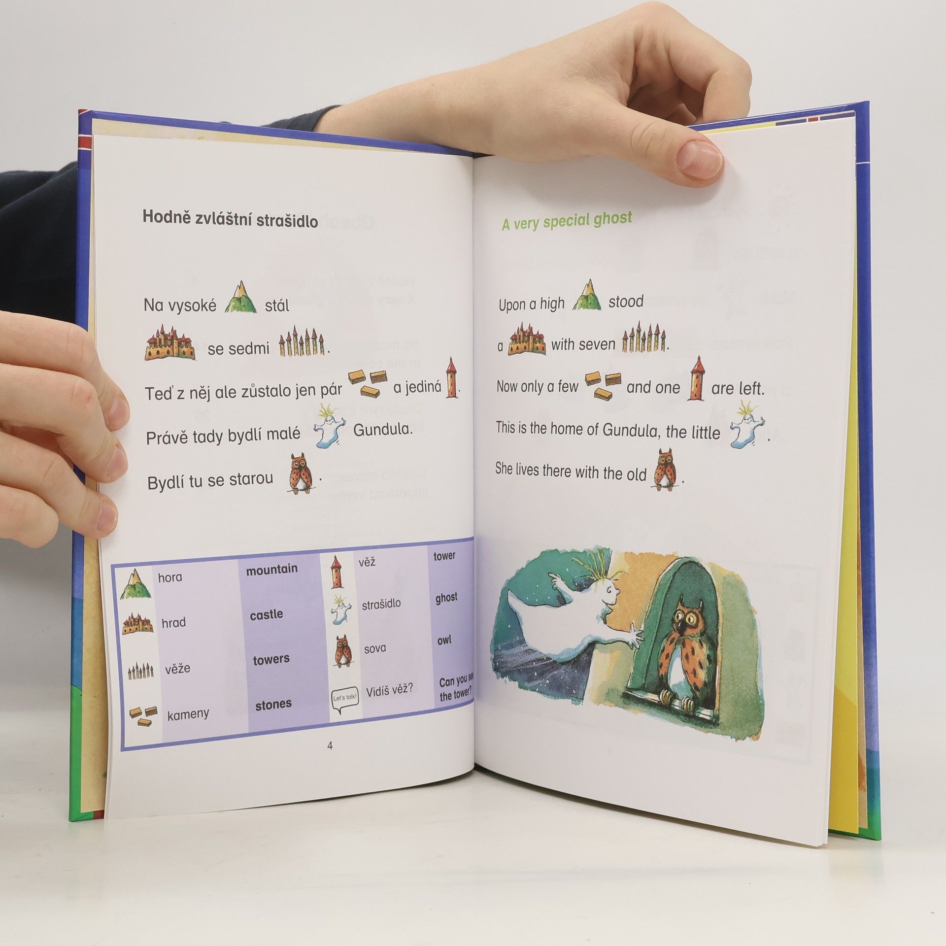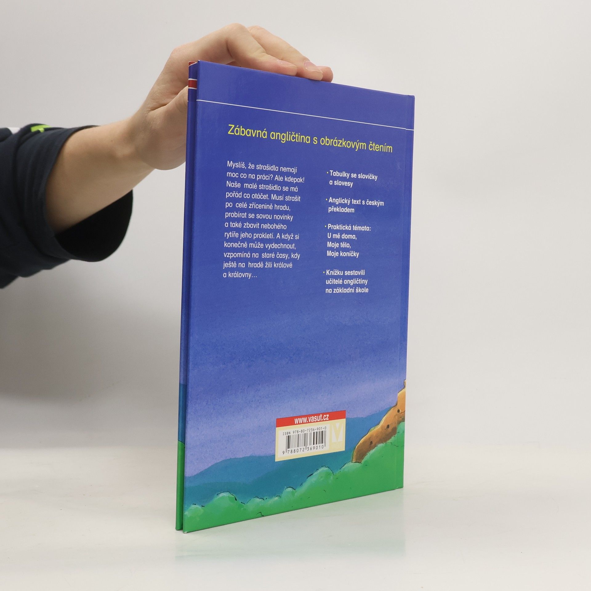 Myslíš, že strašidla nemají moc co na práci? Ale kdepak! Naše malé strašidlo se má pořád co otáčet. Musí strašit po celé zřícenině hradu, probírat se sovou novinky a také zbavit nebohého rytíře jeho prokletí. A když si konečně může vydechnout, vzpomíná na staré časy, kdy ještě na hradě žili králové a královny… – Tabulky se slovíčky a slovesy – Anglický text s českým překladem – Praktická témata: U mě doma, Moje tělo, Moje koníčky – Knížku sestavili učitelé angličtiny na základní škole