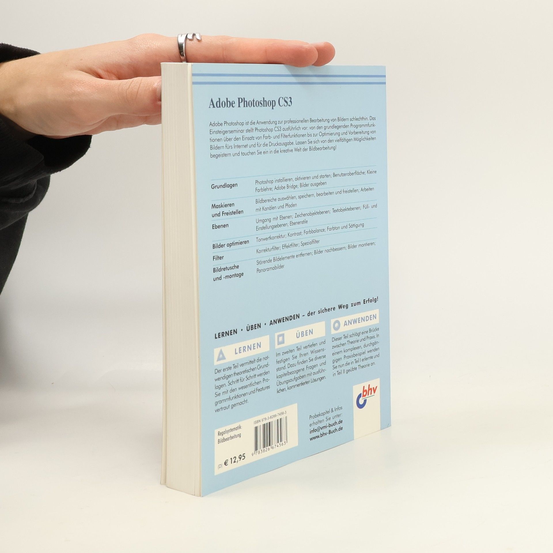 Adobe Photoshop ist die Anwendung zur professionellen Bearbeitung von Bildern schlechthin. Das Einsteigerseminar stellt Photoshop CS3 ausführlich vor: von den grundlegenden Programmfunktionen über den Einsatz von Farb- und Filterfunktionen bis zur Optimierung und Vorbereitung von Bildern fürs Internet, der Druckausgabe und dem Erstellen von Foto-CDs/-DVDs.