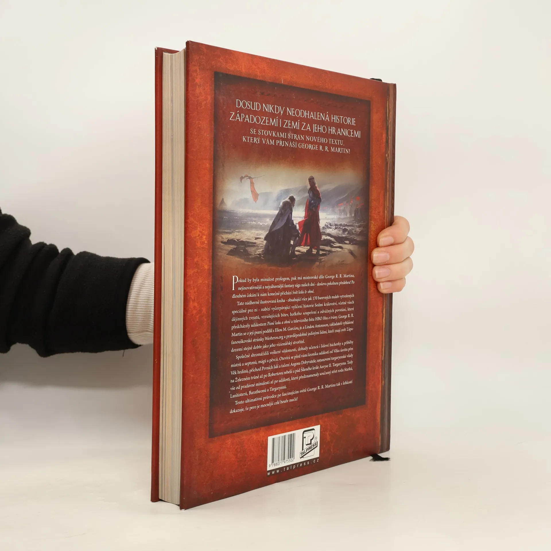 Tato nádherně ilustrovaná kniha – obsahující více než 170 barevných maleb vytvořených speciálně pro ni – nabízí vyčerpávající vylíčení historie Sedmi království, včetně všech dějinných zvratů, vzrušujících bitev, hořkého soupeření a odvážných povstání, které předcházely událostem Písně ledu a ohně a televizního hitu HBO Hra o trůny. George R. R. Martin se o její psaní podělil s Eliem M. Garcíou, jr., a Lindou Antonssonovou, zakladateli vyhlášené fanouškovské stránky Westeros.org a pravděpodobně jedinými lidmi, kteří znají svět Západozemí stejně dobře jako jeho vizionářský stvořitel.