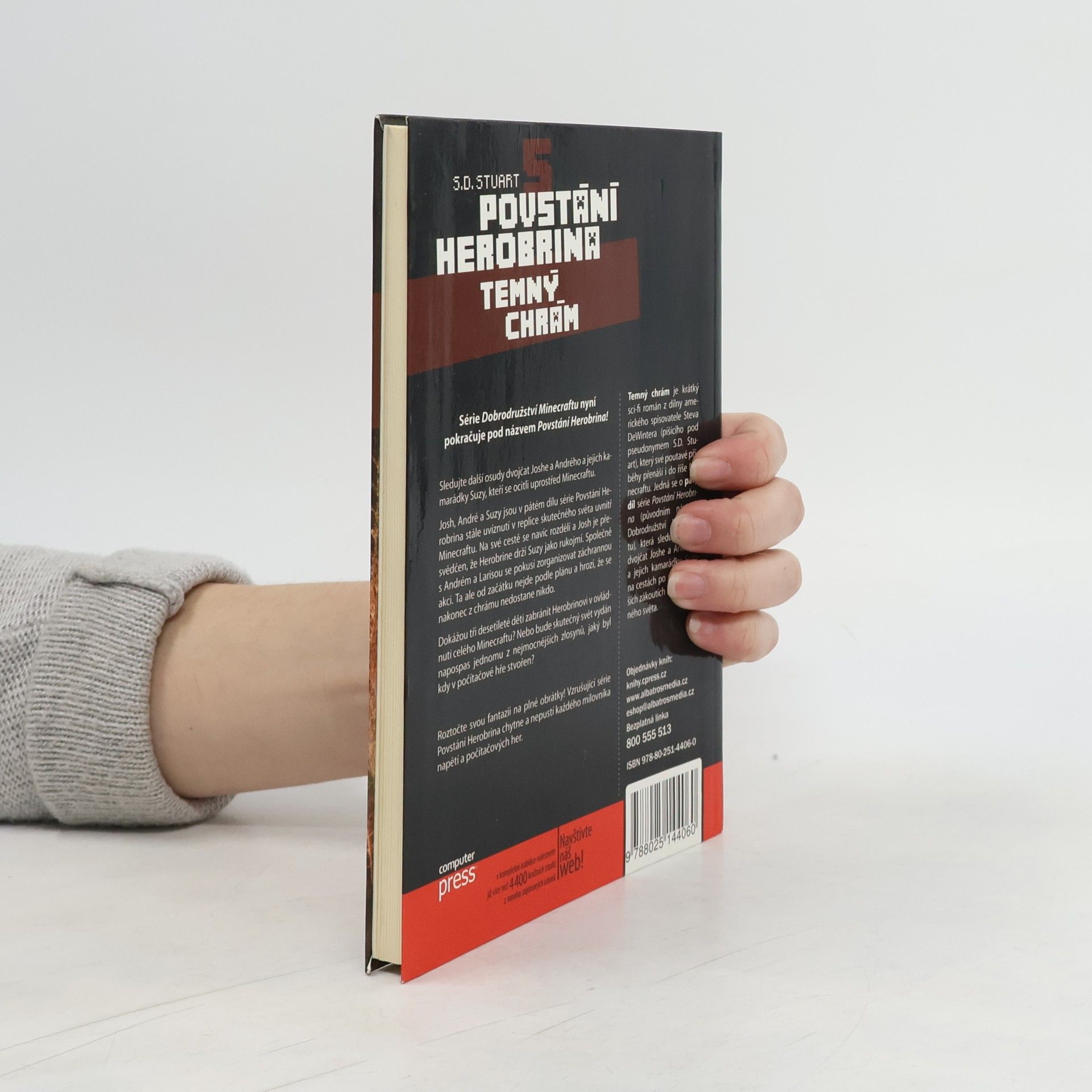 Série Dobrodružství Minecraftu nyní pokračuje pod názvem Povstání Herobrina! Sledujte další osudy dvojčat Joshe a Andrého a jejich kamarádky Suzy, kteří se ocitli uprostřed Minecraftu. Josh, André a Suzy jsou v pátém dílu série Povstání Herobrina stále uvíznutí v replice skutečného světa uvnitř Minecraftu. Na své cestě se navíc rozdělí a Josh je přesvědčen, že Herobrine drží Suzy jako rukojmí. Společně s Andrém a Larisou se pokusí zorganizovat záchrannou akci. Ta ale od začátku nejde podle plánu a hrozí, že se nakonec z chrámu nedostane nikdo. Dokážou tři desetileté děti zabránit Herobrinovi v ovládnutí celého Minecraftu? Nebo bude skutečný svět vydán napospas jednomu z nejmocnějších zlosynů, jaký byl kdy v počítačové hře stvořen? Roztočte svou fantazii na plné obrátky! Vzrušující série Povstání Herobrina chytne a nepustí každého milovníka napětí a počítačových her. Temný chrám je krátký sci-fi román z dílny amerického spisovatele Steva DeWintera (píšícího pod pseudonymem S.D. Stuart), který své poutavé příběhy přenáší i do říše Minecraftu. Jedná se o pátý díl série Povstání Herobrina (původním názvem Dobrodružství Minecraftu), která sleduje osudy dvojčat Joshe a Andrého a jejich kamarádky Suzy na cestách po nejtemnějších zákoutích kostičkovaného světa.
