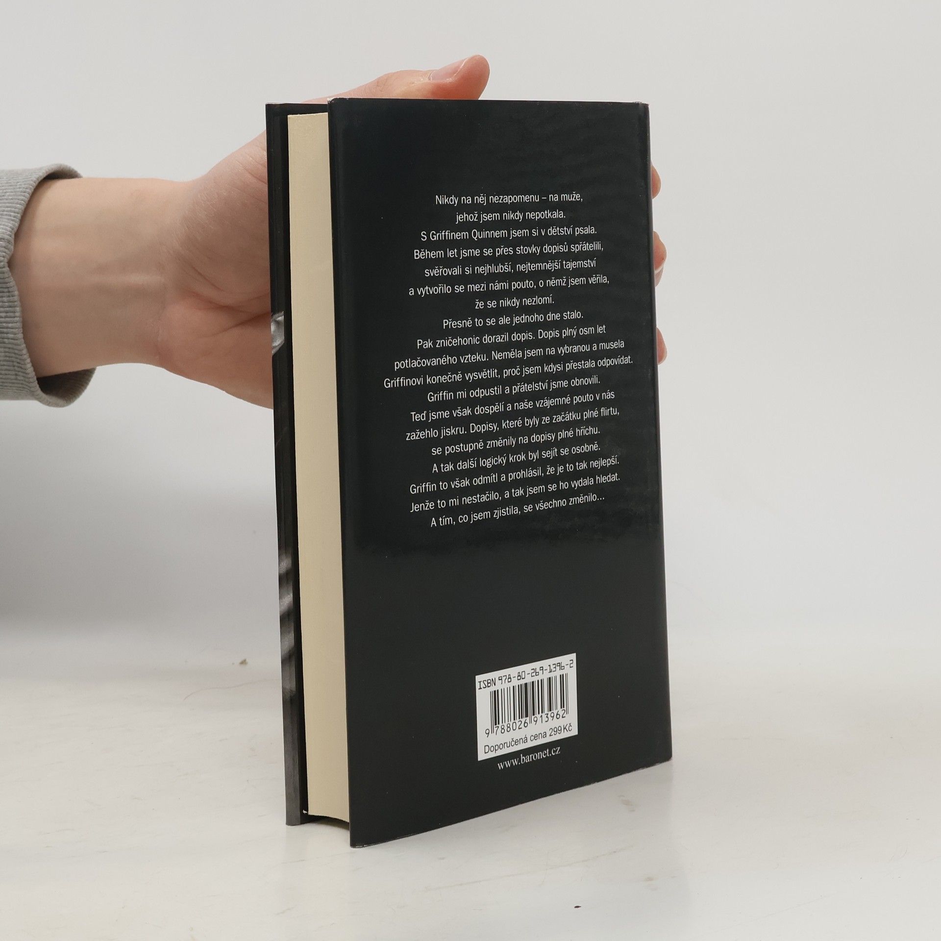 Nikdy na něj nezapomenu – na muže, jehož jsem nikdy nepotkala. S Griffinem Quinnem jsem si v dětství psala. Během let jsme se přes stovky dopisů spřátelili, svěřovali si nejhlubší, nejtemnější tajemství a vytvořilo se mezi námi pouto, o němž jsem věřila, že se nikdy nezlomí. Přesně to se ale jednoho dne stalo. Pak zničehonic dorazil dopis. Dopis plný osm let potlačovaného vzteku. Neměla jsem na vybranou a musela mu konečně vysvětlit, proč jsem kdysi přestala odpovídat. Griffin mi odpustil a přátelství jsme obnovili. Teď jsme však dospělí a naše vzájemné pouto v nás zažehlo jiskru. Dopisy, které byly ze začátku plné flirtu, se postupně změnily na dopisy plné hříchu. A tak další logický krok je sejít se osobně. Griffin to však odmítl a prohlásil, že je to tak nejlepší. To mi však nestačilo, a tak jsem se ho vydala hledat. A tím, co jsem zjistila, se všechno změnilo…