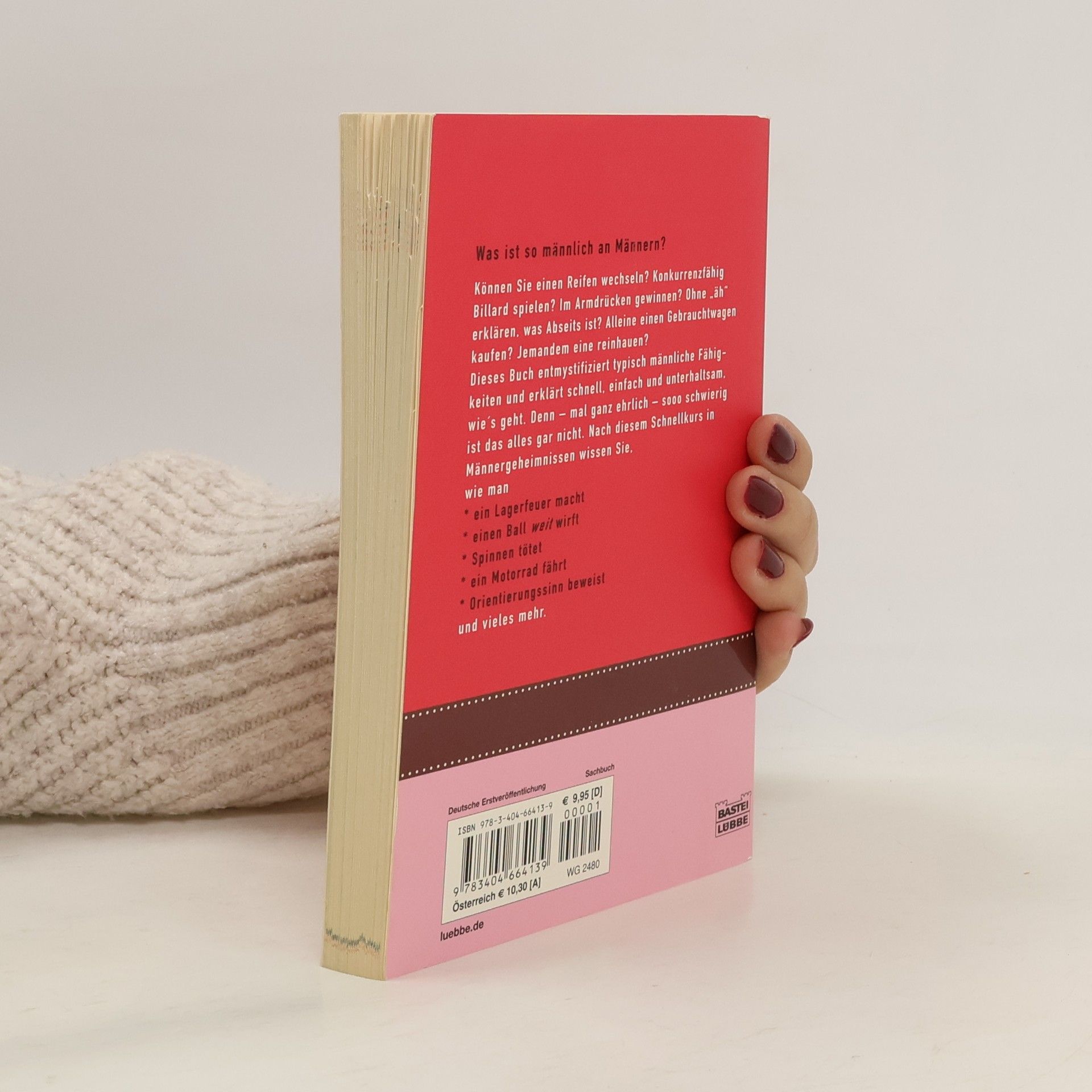 Können Sie einen Reifen wechseln? Konkurrenzfähig Billard spielen? Im Armdrücken gewinnen? Ohne „äh“ erklären, was Abseits ist? Alleine einen Gebrauchtwagen kaufen? Jemandem eine reinhauen? Dieses Buch entmystifiziert typisch männliche Fähigkeiten und erklärt schnell, einfach und unterhaltsam, wie's geht. Denn - mal ganz ehrlich - sooo schwierig ist das alles gar nicht. Nach diesem Schnellkurs in Männergeheimnissen wissen Sie, wie man ein Lagerfeuer macht, einen Ball weit wirft, Spinnen tötet, ein Motorrad fährt und Orientierungssinn beweist.