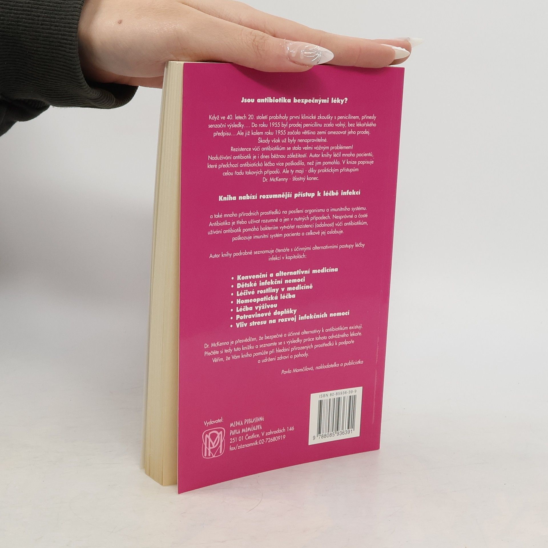 Kniha ALTERNATIVY K ANTIBIOTIKŮM nabízí rozumnější přístup k léčbě infekcí a také mnoho přírodních prostředků na posílení organismu a imunitního systému. Antibiotika je třeba užívat rozumně a jen v nutných případech. Autor knihy podrobně seznamuje čtenáře s účinnými alternativním i postupy léčby infekcí v kapitolách týkajících se dětských infekčních onemocnění, léčivých rostlin v medicíne, homeopatické léčby, potravinových doplňků a vlivu stresu na rozvoj infekční nemoc