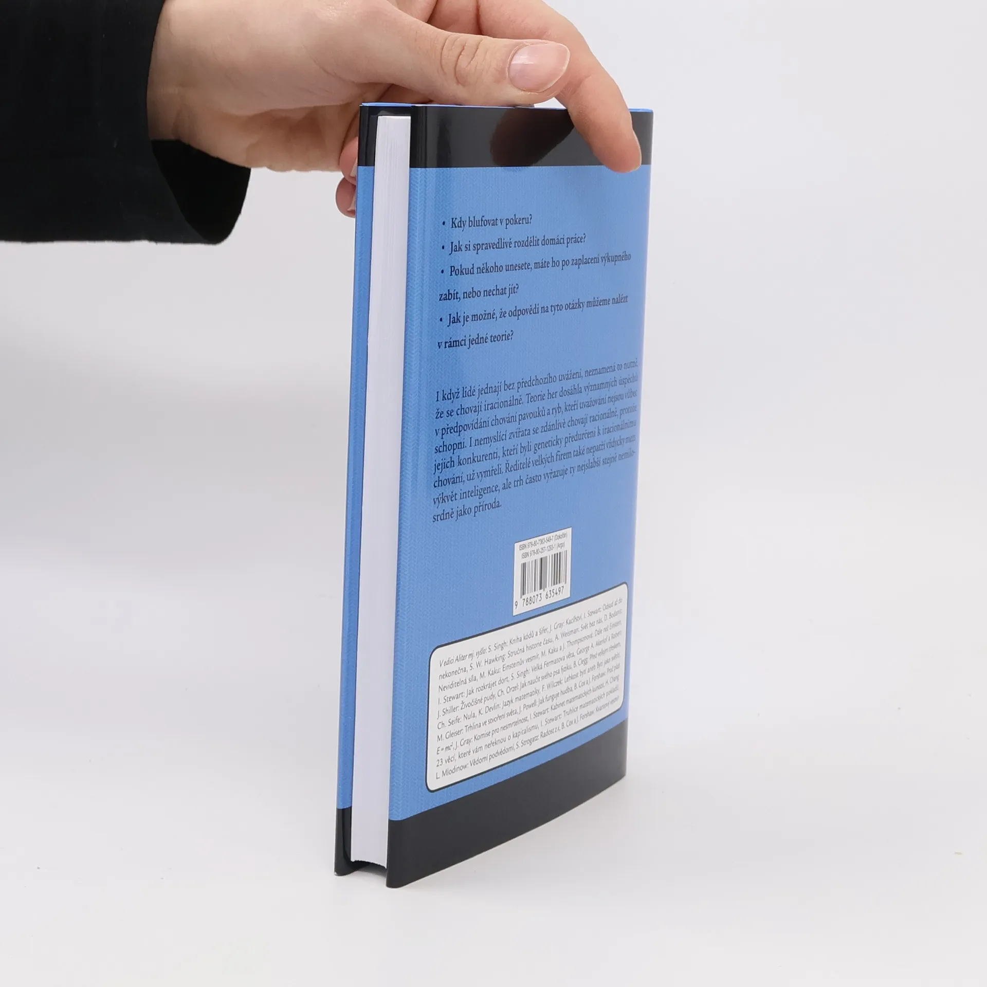 ... a jak může změnit váš život. Pokaždé, když se setkají dva lidé, hrají spolu nějakou hru – nebo aspoň pokaždé, když mají cíle, kterých chtějí dosáhnout, a strategie, které k tomu mohou využít. Hry tedy hrají úplně všichni – obchodníci s akciemi i řidiči v dopravní špičce, vězni na útěku i účastníci internetových aukcí, zamilované páry při romantických námluvách i politici při vyhlašování ultimát. Teorie her studuje otázky, které jsou všem těmto hrám společné, například jak budou postupovat racionální hráči či jak předvídat výsledek hry. Tato poutavě napsaná kniha umožní pochopit teorii her bez složitého matematického aparátu. Ukazuje, jak lze z několika jednoduchých předpokladů vybudovat značně složitou teorii, která – i když byla původně určena pro aplikace v ekonomii – stačila za svoji relativně krátkou dobu existence ovlivnit natolik rozdílné obory, jako je politologie a etika na jedné straně a evoluční biologie na straně druhé.