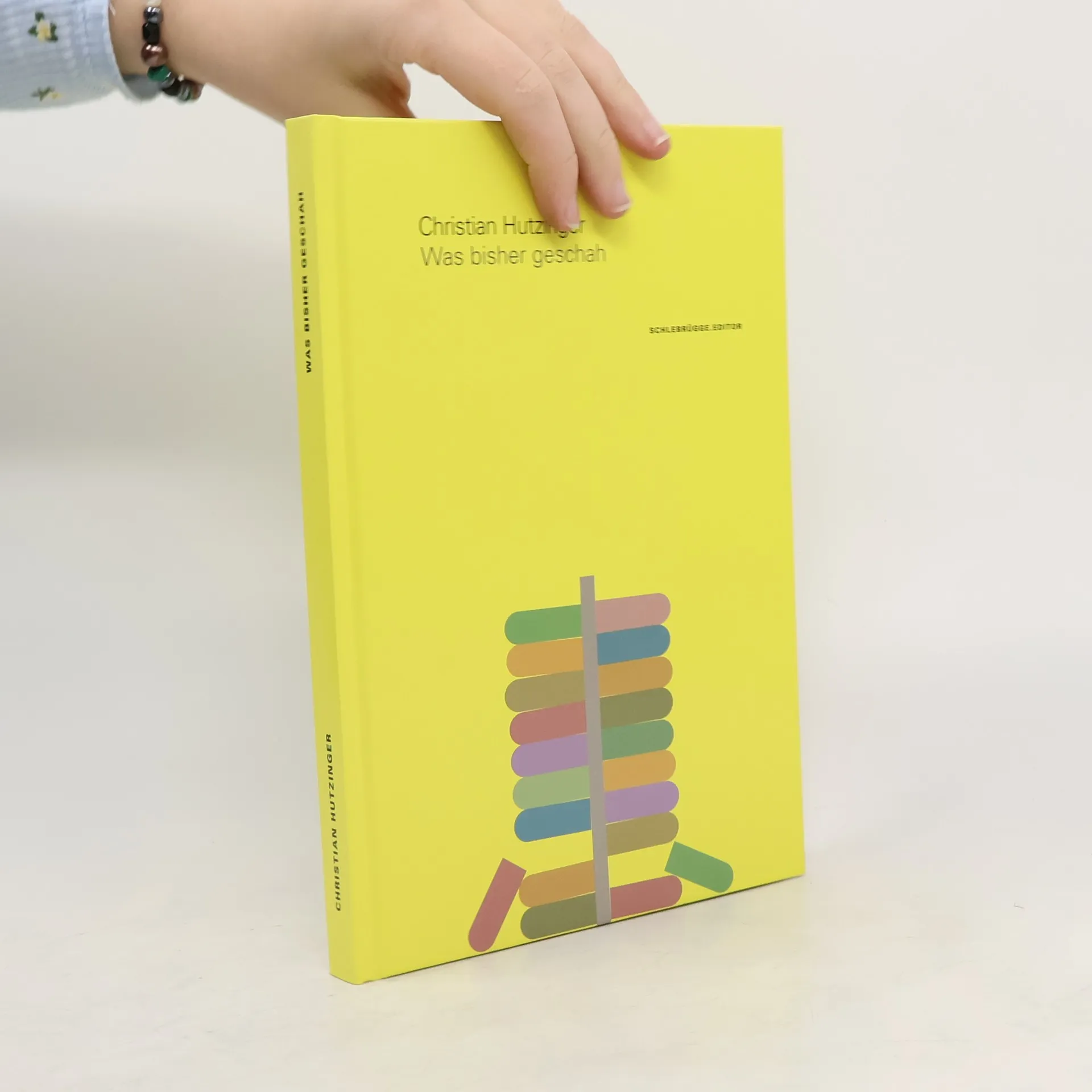 Christian Hutzinger gehört zu den jüngeren österreichischen Künstlern, die konzeptuell über das Tafelbild hinausgegangen sind und den umgebenden, gegebenen Raum neu definieren. Einfache dekorative Formen und Fundstücke aus der Illustrations- und Designgeschichte der letzten dreißig Jahre werden spielerisch kombiniert und erscheinen narrativ aufgeladen. In seinem neuen Künstlerbuch entfaltet Hutzinger sein Repertoire aus Geometrie, Farbe und Bewegung im Raum.