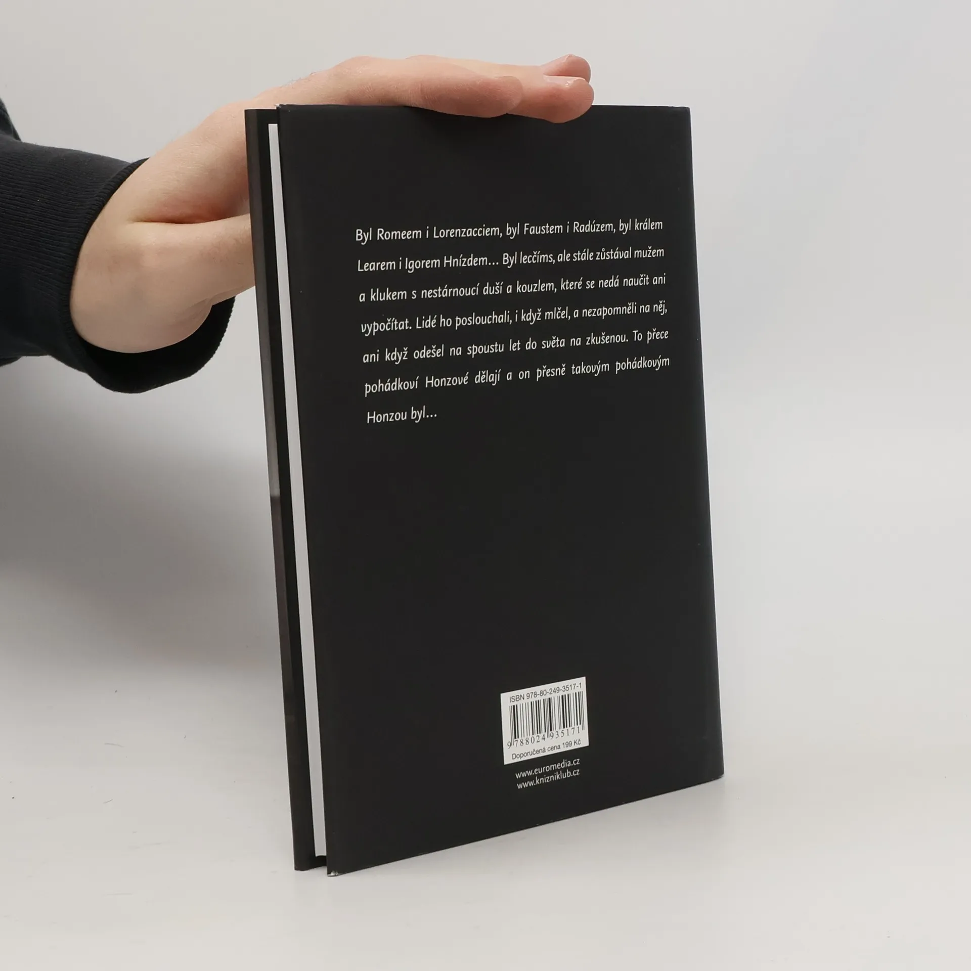 Byl Romeem i Lorenzacciem, byl Faustem i Radúzem, byl králem Learem i Igorem Hnízdem. Byl lecčíms, ale stále zůstával mužem a klukem s nestárnoucí duší a kouzlem, které se nedá naučit ani vypočítat. Lidé ho poslouchali, i když mlčel, a nezapomněli na něj, ani když odešel na spoustu let do světa na zkušenou. Ale to pohádkoví Honzové dělají a on přesně takovým pohádkovým Honzou byl… Biografie z pera Marie Formáčkové přibližuje životní peripetie renomovaného umělce, který vystudoval pražskou DAMU, stal se nejmladším členem činohry Národního divadla a uznávaným filmovým hercem. Životní i uměleckou dráhu mu však zkomplikovala složitá doba.