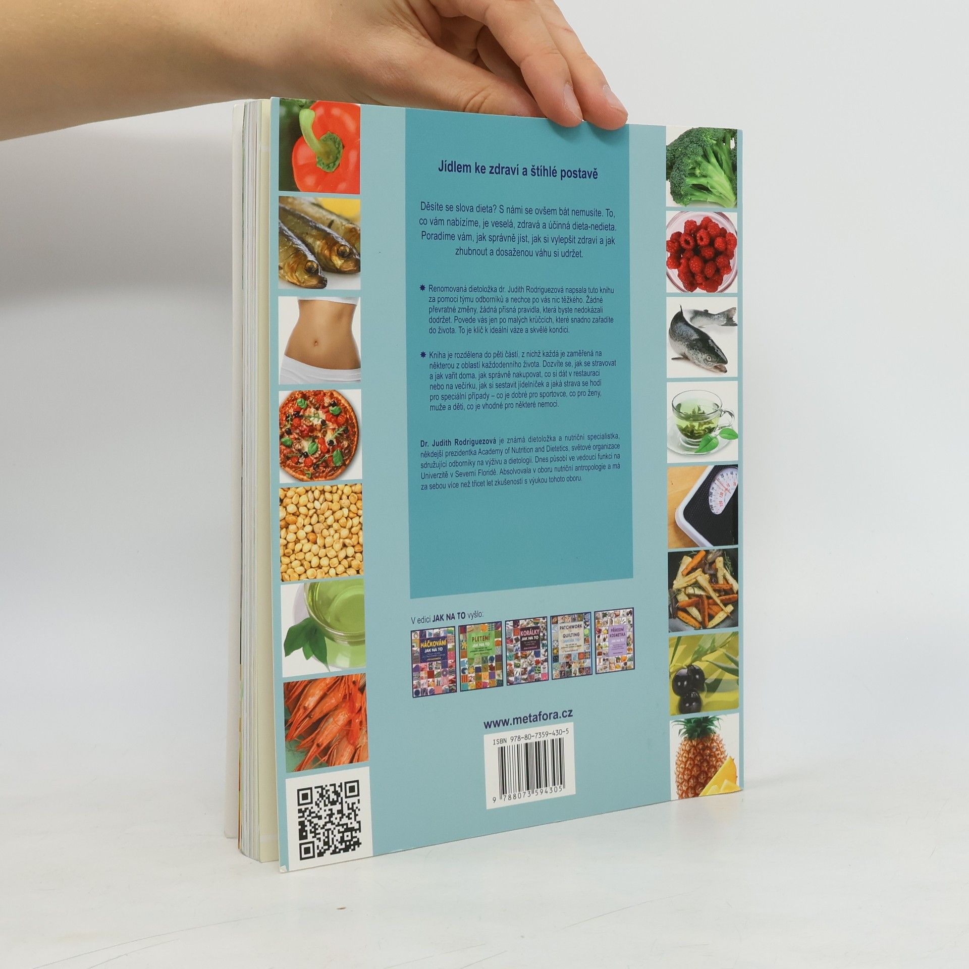 200 osvědčených tipů, jak se správně stravovat pro zdraví a pohodu Jídlem ke zdraví a štíhlé postavě Děsíte se slova dieta? S námi se ovšem bát nemusíte. To, co vám nabízíme, je veselá, zdravá a účinná dieta-nedieta. Poradíme vám, jak správně jíst, jak si vylepšit zdraví a jak zhubnout a dosaženou váhu si udržet. Renomovaná dietoložka dr. Judith Rodriguezová napsala tuto knihu za pomoci týmu odborníků a nechce po vás nic těžkého. Žádné převratné změny, žádná přísná pravidla, která byste nedokázali dodržet. Povede vás jen po malých krůčcích, které snadno zařadíte do života. To je klíč k ideální váze a skvělé kondici. Kniha je rozdělena do pěti částí, z nichž každá je zaměřená na některou z oblastí každodenního života. Dozvíte se, jak se stravovat a jak vařit doma, jak správně nakupovat, co si dát v restauraci nebo na večírku, jak si sestavit jídelníček a jaká strava se hodí pro speciální případy – co je dobré pro sportovce, co pro ženy, muže a děti, co je vhodné pro některé nemoci.