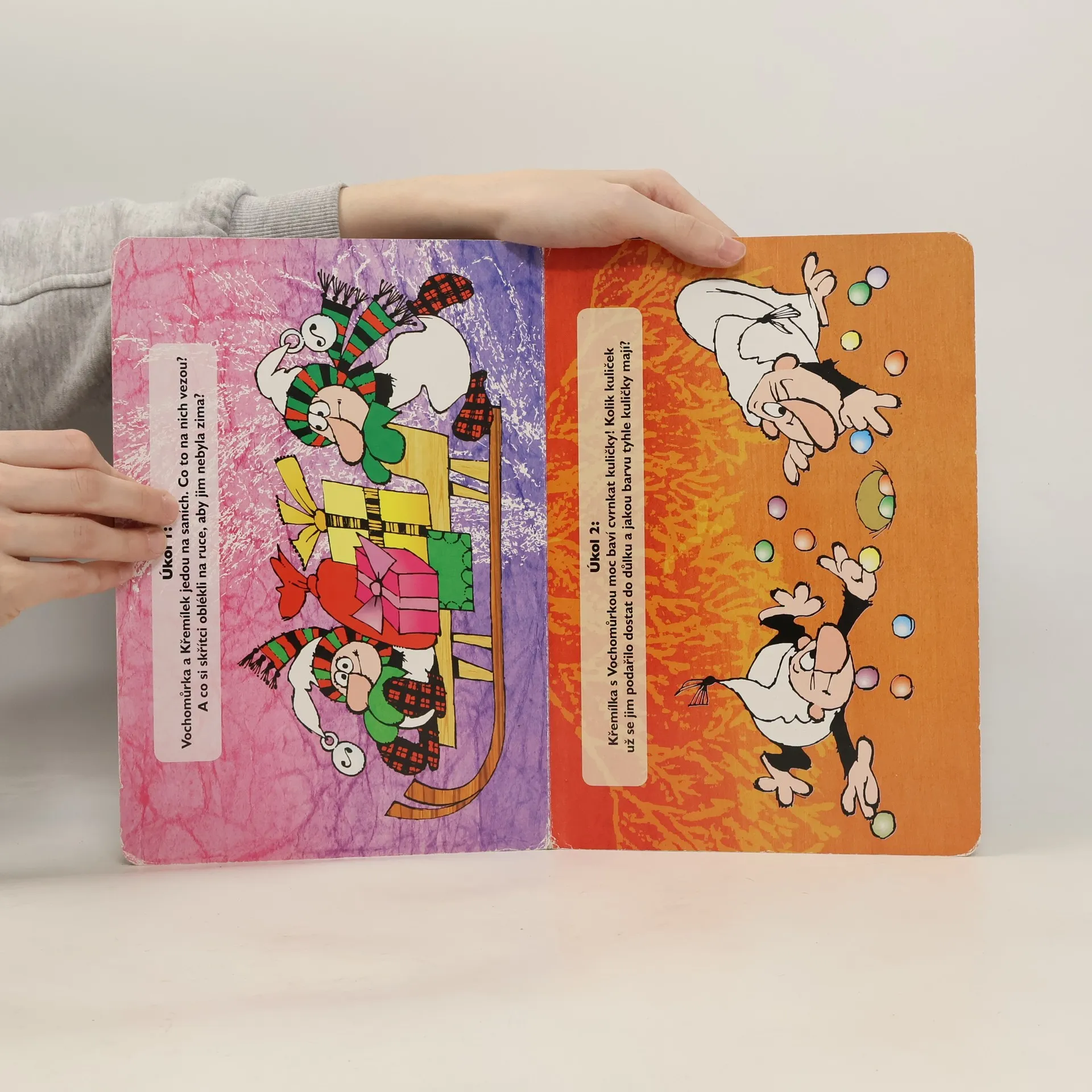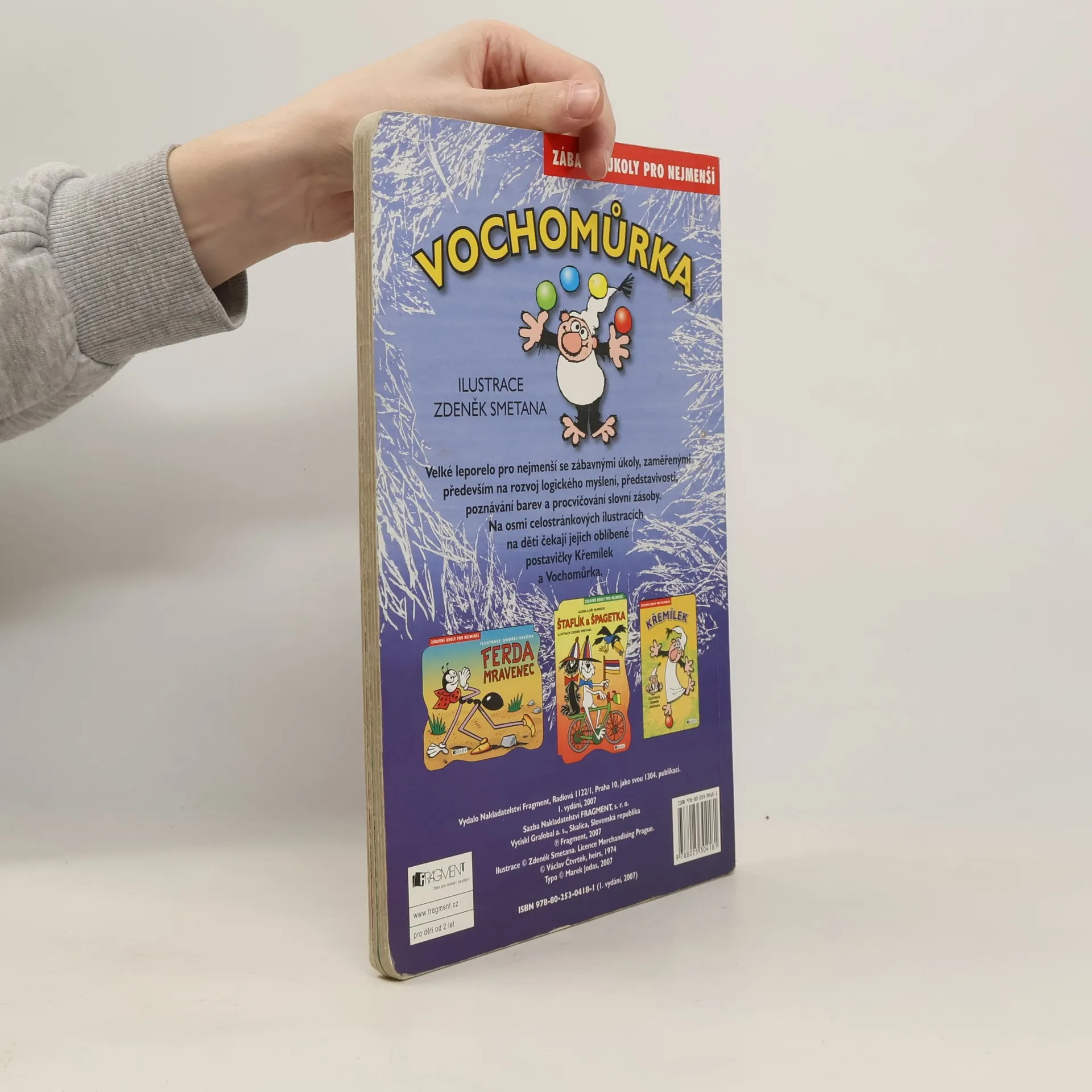 Velké leporelo pro nejmenší se zábavnými úkoly, zaměřenými především na rozvoj logického myšlení, představivosti, poznání barev a procvičování slovní zásoby. Na osmi celostránkových ilustracích na děti čekají jejich oblíbené postavičky Křemílek a Vochomůrka.