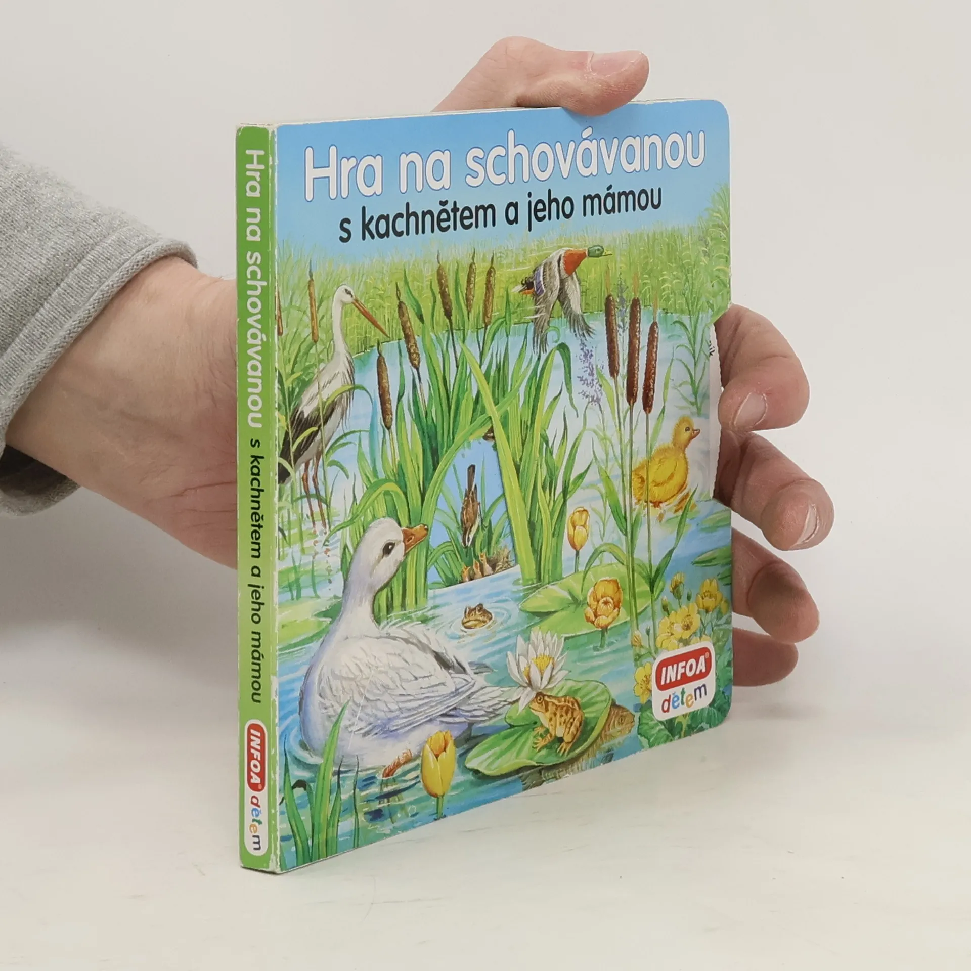 Interaktivní leporelo s otočným kolečkem a příběhem o neposedném kachněti. Děti pomocí otočného kolečka hledají, kam se mohlo kachně schovat svojí mámě, a přitom nacházejí další zvířátka.