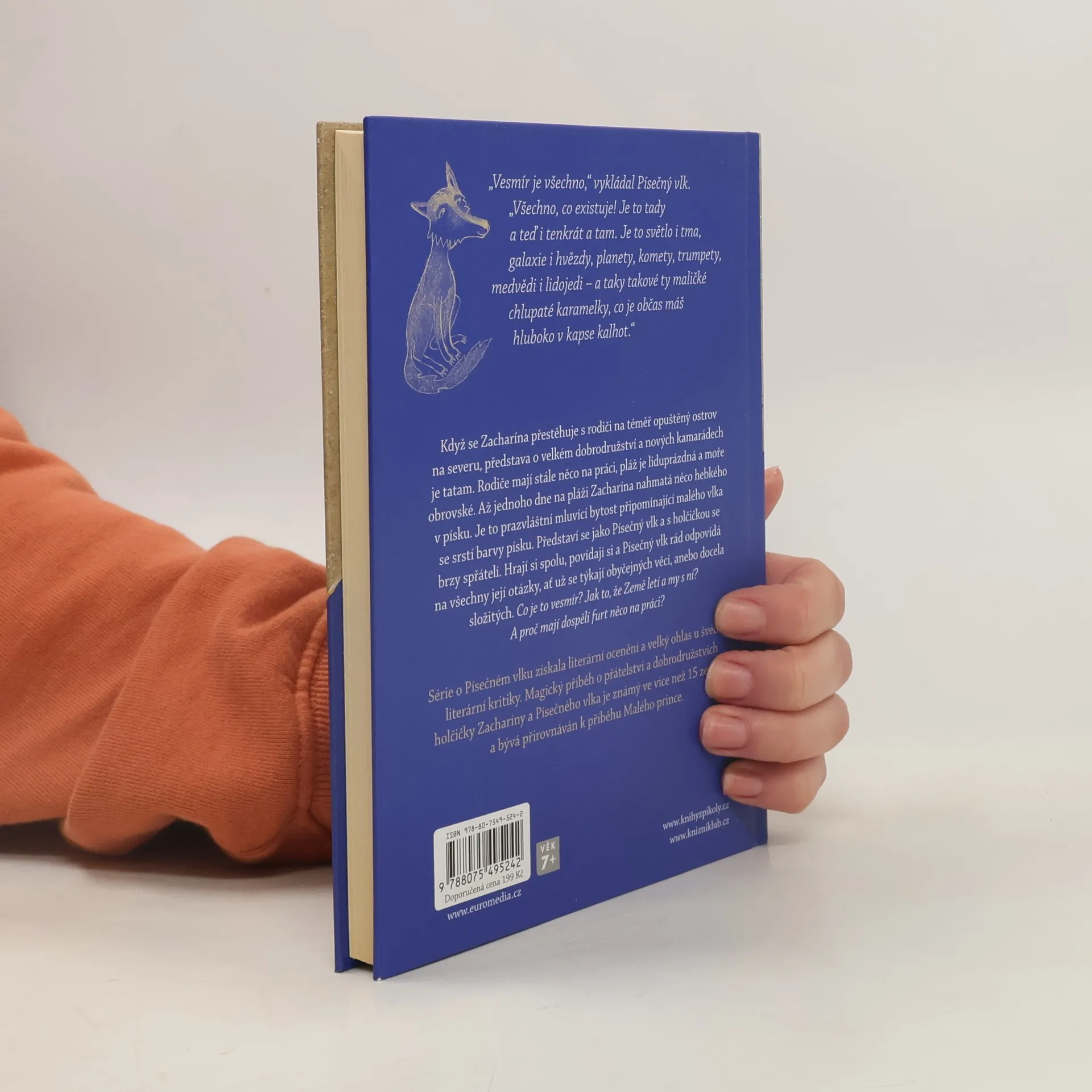 Pohádky pro dívky do 10 let. Když se Zacharína přestěhuje s rodiči do domečku na téměř opuštěný ostrov na severu, představa o velkém dobrodružství a nových kamarádech je tatam. Rodiče mají stále něco na práci, pláž je liduprázdná a moře obrovské. Až jednoho dne na pláži Zacharína nahmatá něco hebkého v písku. Je to prazvláštní mluvící bytost připomínající malého vlka se srstí barvy písku. Představí se jako Písečný vlk a s holčičkou se brzy spřátelí. Hrají si spolu, povídají si a Písečný vlk rád odpovídá na všechny její otázky, ať už se týkají obyčejných věcí, anebo docela složitých. Co je to vesmír? Jak to, že Země letí a my s ní? A proč mají dospělí furt něco na práci?