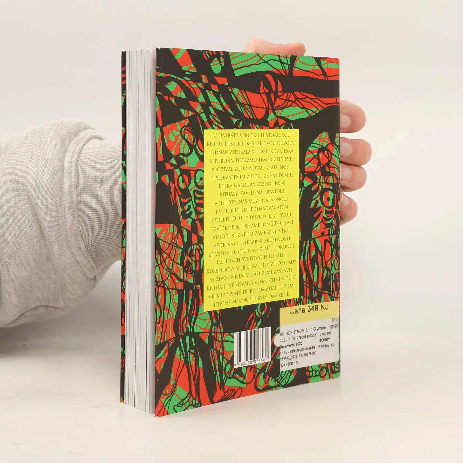 100 nových povídek, které vzniklo v době koronaviru. Při epidemii moru ve Florencii v polovině 14. století vznikl Boccacciův Dekameron, soubor sta kratochvilných příběhů vypravovaných v izolaci k ukrácení karantény. Vzhledem k celosvětové pandemii covid19 letos toto Boccaciovo dílo posloužilo v Česku jako inspirace pro vytvoření knihy podobně mimořádné. Na popud Obce spisovatelů České republiky vznikl unikátní mezinárodní almanach sestavený z děl, která vznikla v době mimořádného stavu. I Dekameron 2020 obsahuje sto povídek – mezi spisovateli, kteří poskytli do knihy své povídky jsou světově známá jména i autoři méně známí, vedle českých autorů se zapojili i tvůrci z několika dalších evropských zemí včetně Slovenska, Německa a Velké Británie.