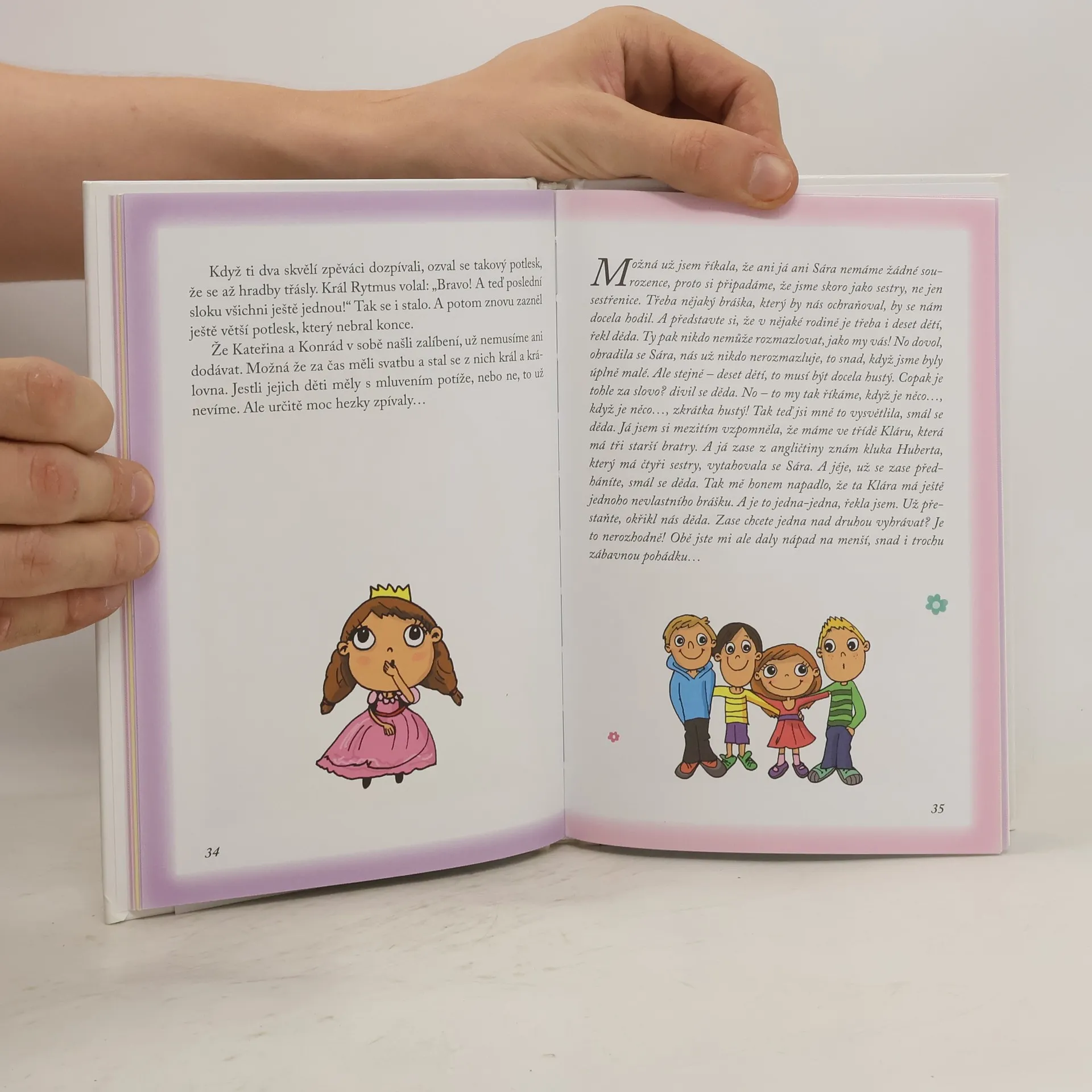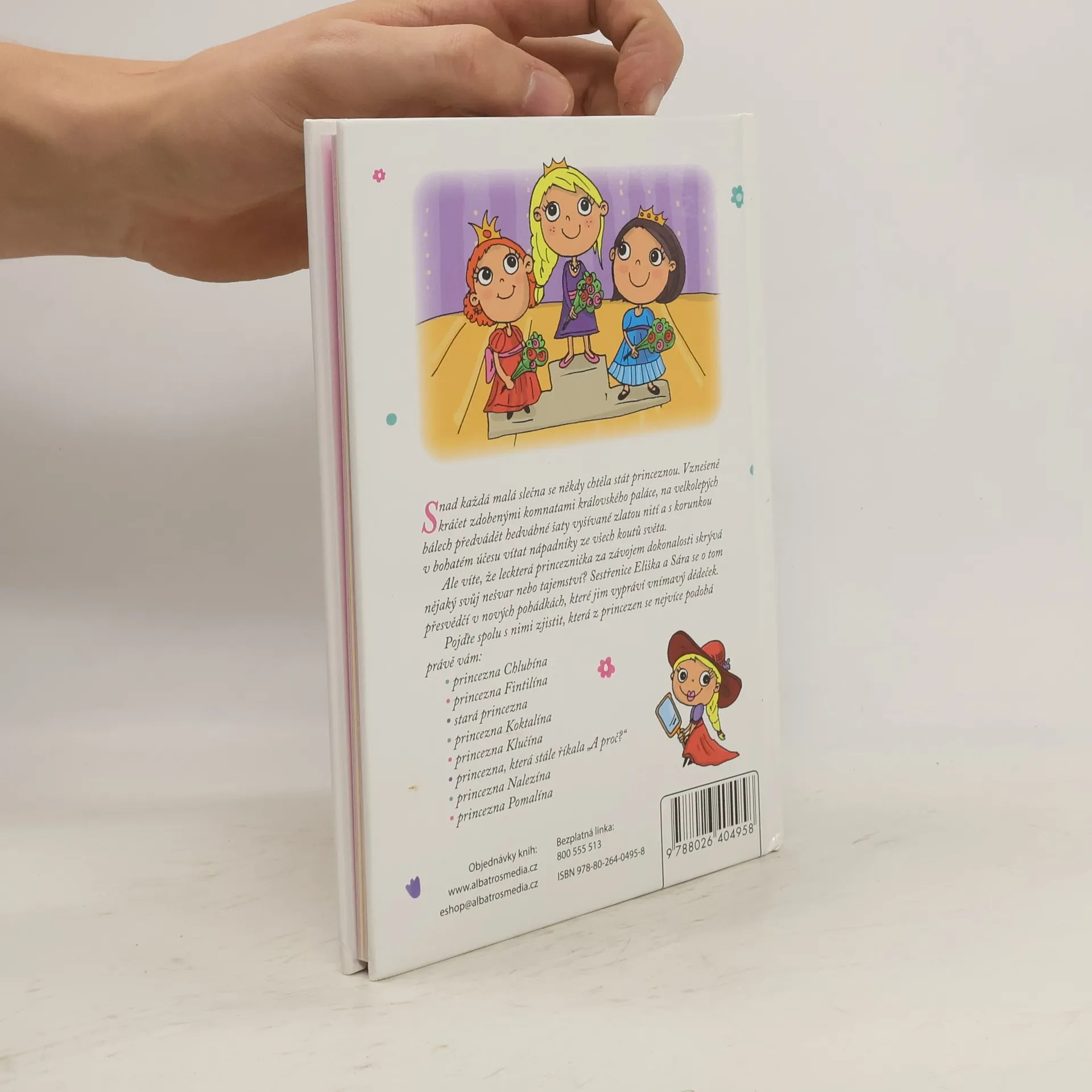 Snad každá malá slečna se někdy chtěla stát princeznou. Vznešeně kráčet zdobenými komnatami královského paláce, na velkolepých bálech předvádět hedvábné šaty vyšívané zlatou nití a s korunkou v bohatém účesu vítat nápadníky ze všech koutů světa. Ale víte, že leckterá princeznička za závojem dokonalosti skrývá nějaký svůj nešvar nebo tajemství? Sestřenice Eliška a Sára se o tom přesvědčí v nových pohádkách, které jim vypráví vnímavý dědeček. Pojďte spolu s nimi zjistit, která z princezen se nejvíce podobá právě vám: * princezna Clubína * princezna Fintilína * stará princezna * princezna Koktalína * princezna Klučína * princezna, která stále říkala „A proč?“ * princezna Nalezína * princezna Pomalína. Nové pohádky o princeznách, které se nápadně podobají současným holčičkám.