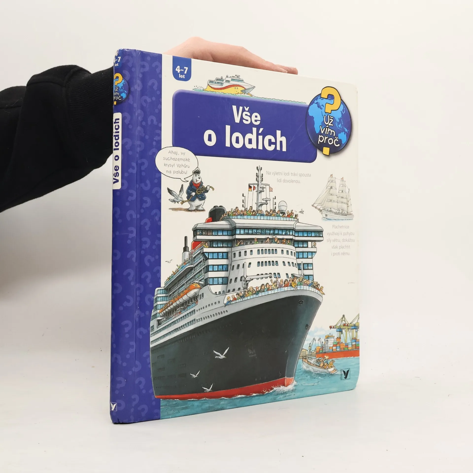 Víš, jak se řídí loď? A jak je vůbec možné, že plují po vodě? Víš, co je to námořnická latina? Kniha Vše o lodích ti srozumitelně a zábavně vše vysvětlí, a dokonce se otevíracími okénky podíváš do trupu zaoceánského parníku a pod ruce samotnému kapitánovi.