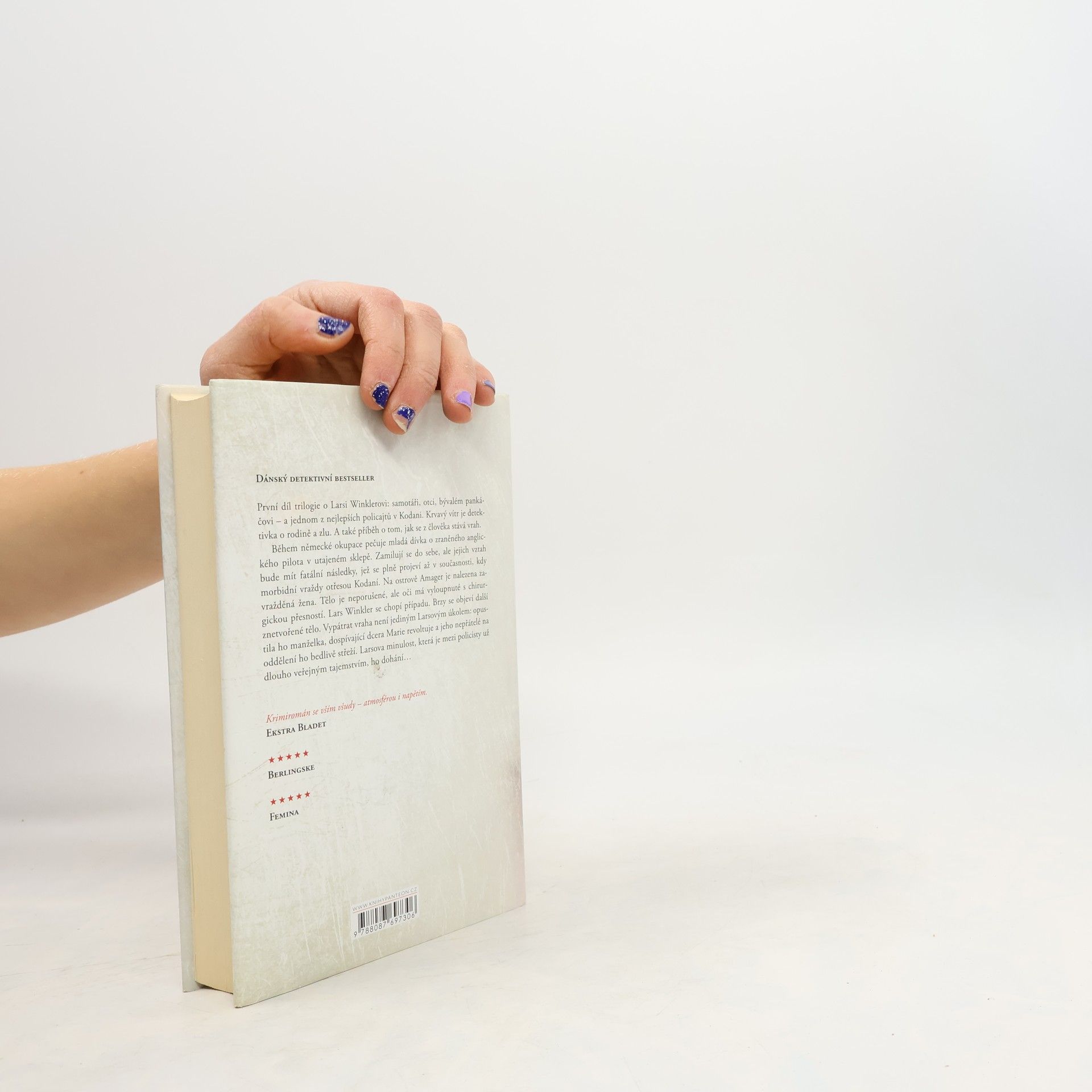 První díl trilogie o Larsi Winklerovi: samotáři, otci, bývalém pankáčovi - a jednom z nejlepších policejních vyšetřovatelů v Kodani. Krvavý vítr je detektivka z kodaňských ulic o rodině a zlu. A také příběh o tom, jak se z člověka stává vrah. Během německé okupace pečuje mladá dívka o zraněného anglického pilota v utajeném sklepě. Zamilují se do sebe, ale jejich vztah bude mít fatální následky, jež se plně projeví až v současnosti, kdy morbidní vraždy otřesou Kodaní. Na ostrově Amager je nalezena zavražděná žena. Tělo je neporušené, ale oči má vyloupnuté s chirurgickou přesností. Kodaňský policista Lars Winkler se chopí případu. Brzy se objeví další znetvořené tělo. Vypátrat vraha není jediným Larsovým úkolem: opustila ho manželka, dospívající dcera Marie revoltuje a jeho nepřátelé na oddělení ho bedlivě střeží. Larsova minulost, která je mezi policisty už dlouho veřejným tajemstvím, ho dohání.