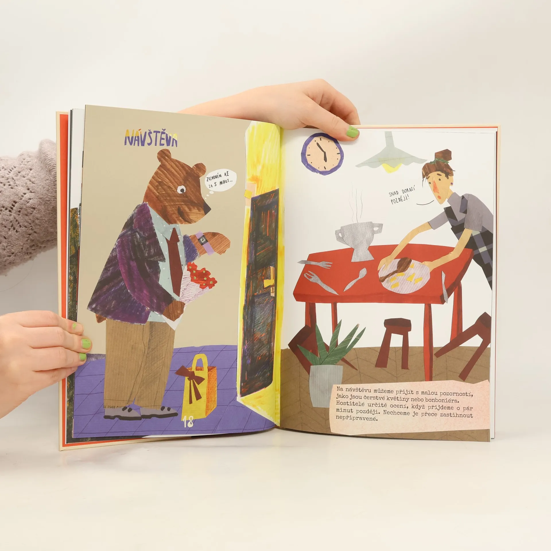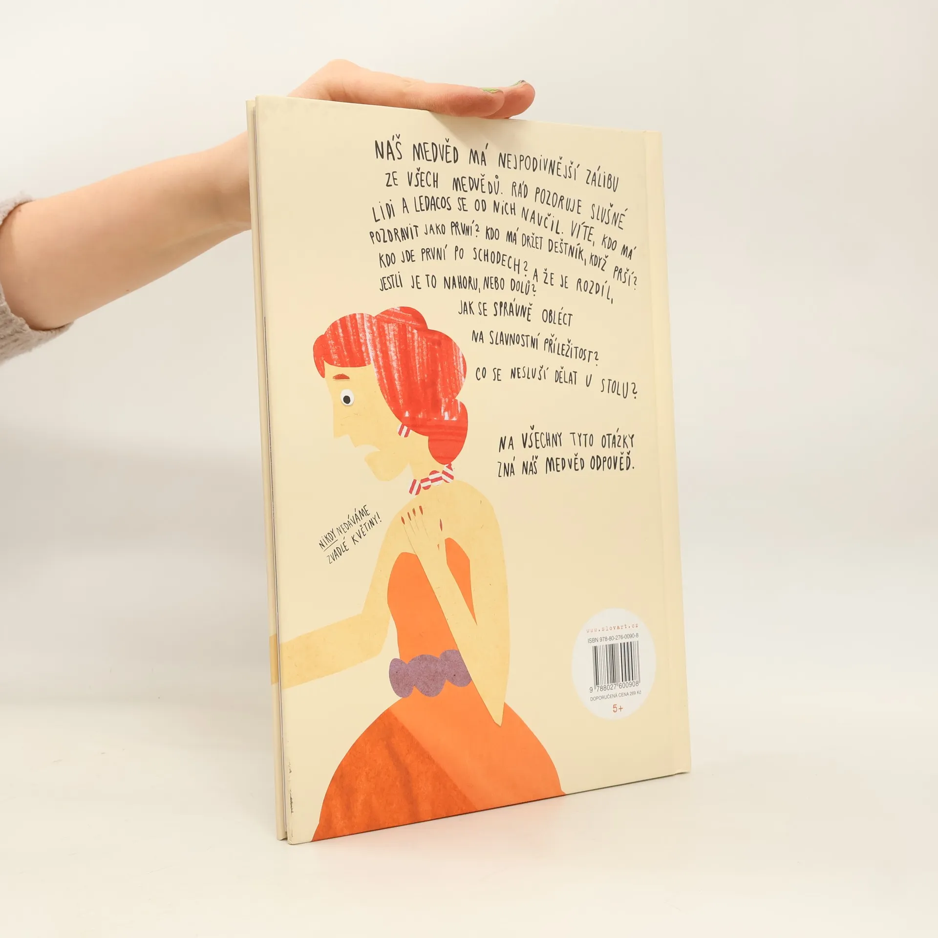 O medvědech si jistě myslíte, že jsou to neohrabaná huňatá zvířata, kterým chutná med a v čase, kdy na zemi padne sněhová přikrývka, spí hlubokým zimním spánkem. Ale náš medvěd je jiný – rád pozoruje slušné lidi a se vším, co zjistil, se chce podělit s vámi, malými čtenáři. Naučí vás zdravit, nastupovat do tramvaje, jak se obléct na různé příležitosti, jak se chovat v kině a u stolu při jídle. Dokonce vám ukáže, jak si uvázat kravatu (to se vám jako dospělým může hodit). Kniha je rozšířenou a upravenou verzí semestrální práce mladé slovenské ilustrátorky.