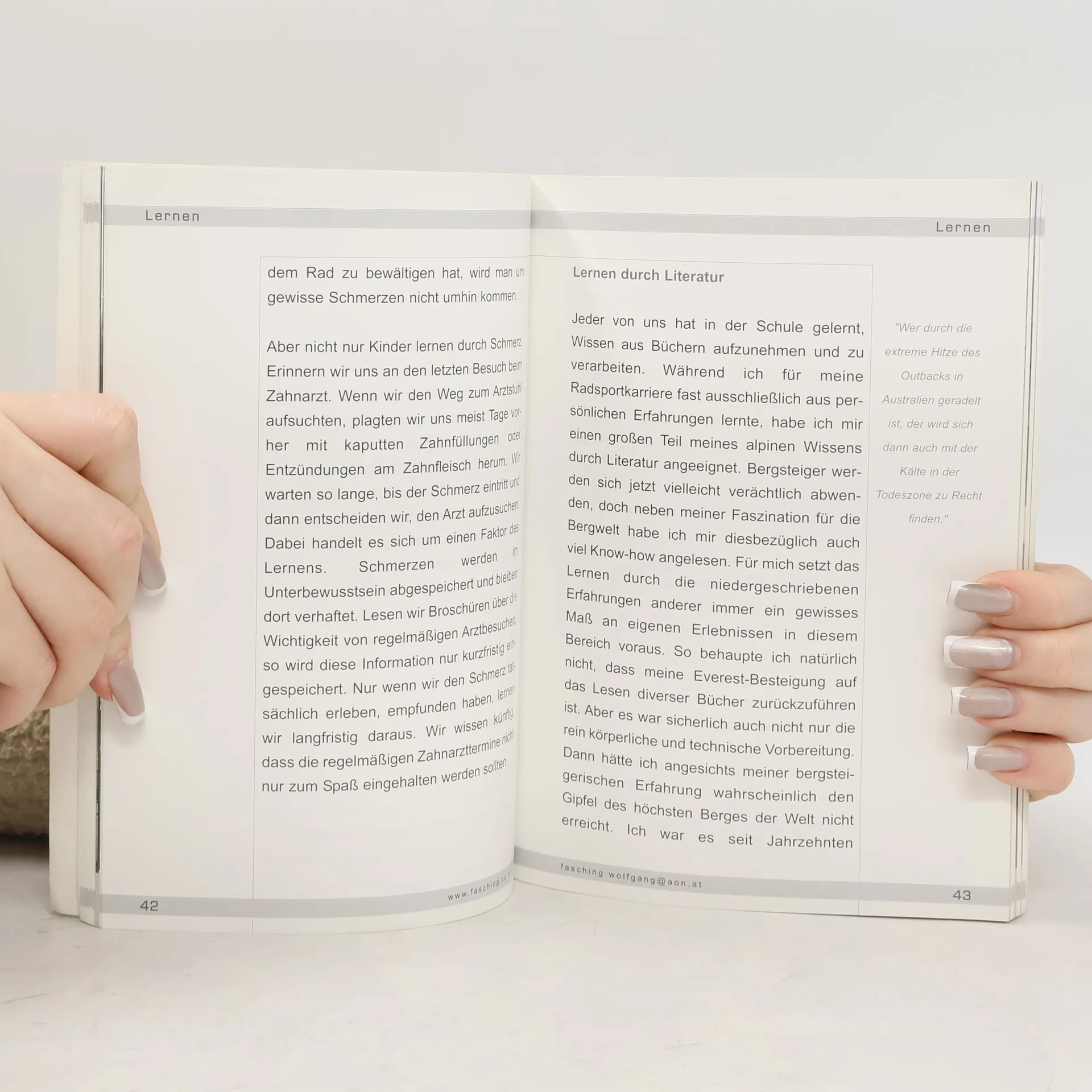 Nach 650.000 Kilometern auf dem Fahrrad, das sind insgesamt 15 Erdumrundungen, war Schluss.§Wolfgang Fasching hat drei Mal das Race Across America gewonnen und stand als 13. Österreicher am Gipfel des Mount Everest. Er hat den Extremsport im deutschsprachigen Raum salonfähig gemacht. Wolfgang Fasching verrät Ihnen sein Erfolgsgeheimnis, erzählt aus seinem reichhaltigen Erfahrungsschatz und hilft Ihnen: So finden Sie Ihre Visionen!§So können Sie Ihre Ziele erreichen! So können Sie sich motivieren, Ihre Träume in die Realität umzusetzen.§'Spüren Sie Ihr Ziel? Bekommen Sie eine Gänsehaut, wenn Sie an Ihren wichtigsten Traum denken?'§Der Buchautor, Seminarleiter und Vortragende Wolfgang Fasching begleitet Sie in diesem Buch, Ihre Ziele zu erreichen! Er gibt wertvolle Tipps und zahlreiche Praxisbeispiele.§Denken Sie also immer daran: 'Du schaffst was Du willst!'
