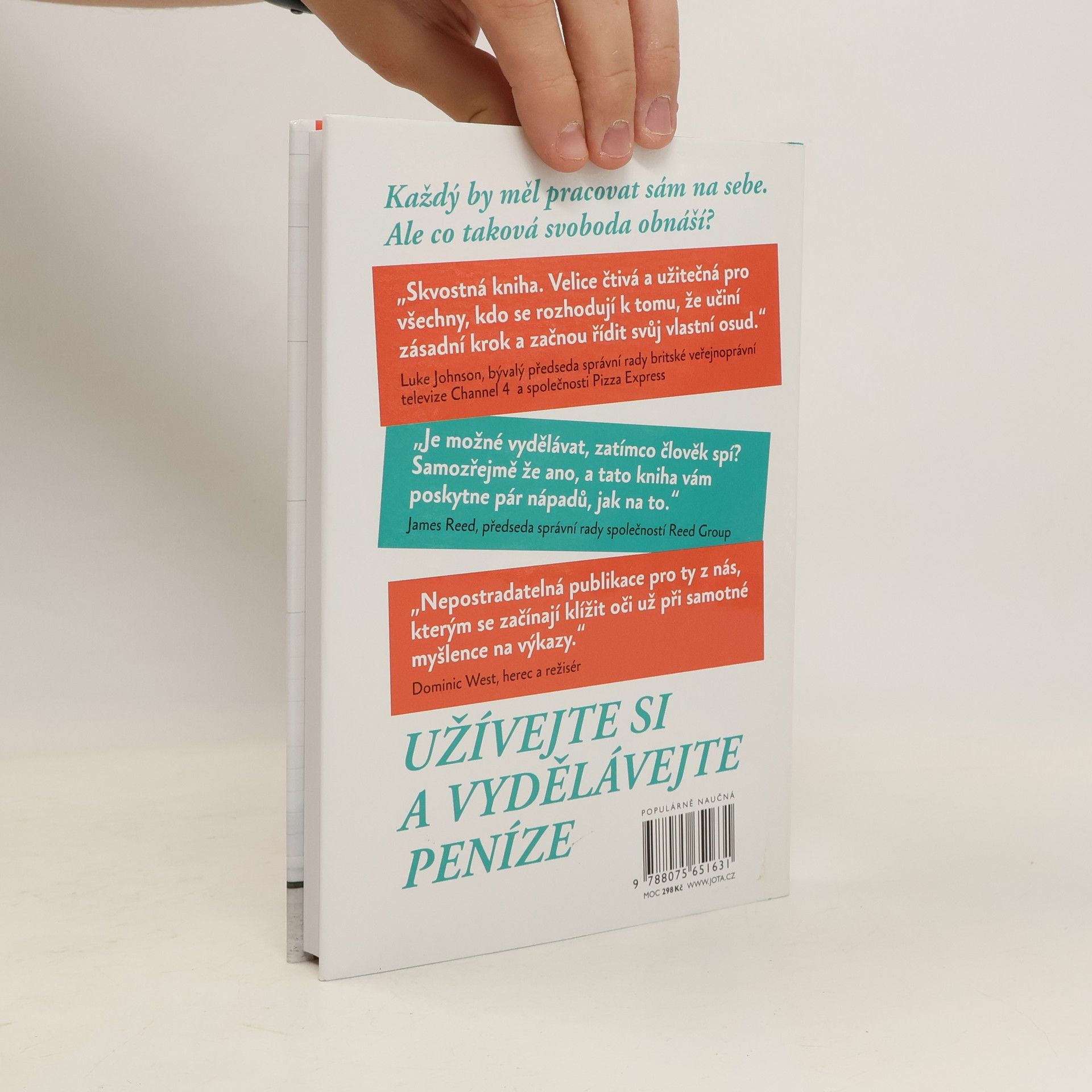 Tom Hodgkinson se naučil podnikat na základě pracně získané vlastní zkušenosti. Ze čtyřhodinového pracovního nasazení, kdy se jako spisovatel na volné noze živil psaním knih, se vrhl do podnikání a z propagátora pohodového životního stylu se najednou stal neurotický cholerik. Tom nabízí praktické rady, popisuje komické situace a seznamuje nás se všemi nástroji, jichž je zapotřebí k tomu, abychom mohli přetavit svůj talent do ziskového a zároveň zábavného podnikání. Tento základní průvodce pro všechny, kdo usilují o větší svobodu v pracovním životě, přináší informace od marketingu přes účetnictví až k nutnosti delegovat úkoly na spolupracovníky. Nezapomíná ani na umění přesvědčovat a vyjednávat a nabízí návod na to, jak neztratit hlavu, když nám stres začne přerůstat přes hlavu. Užívejte si a vydělávejte přitom peníze!