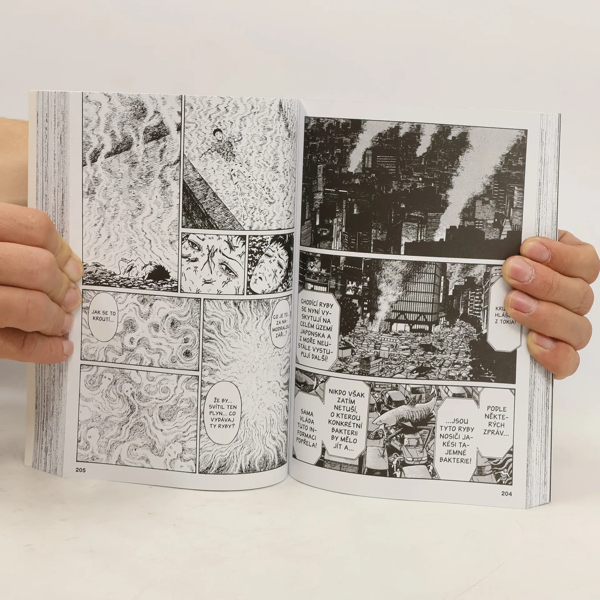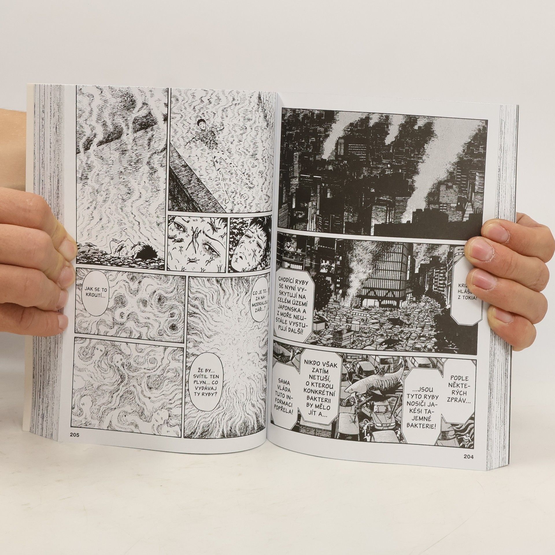 Horor, při kterém se vyplatí nedýchat. Nad Okinawou se vznáší pach smrti... a z moře vycházejí ryby na kovových nožičkách. A rybami to jen začíná. Skupina přeživších se snaží bojovat s odporným nebezpečím. A smrad, který přináší smrt, se stále šíří. Skvělá hororová manga od jednoho z nejslavnějších tvůrců žánru! Kompletní příběh (plus několik povídek) v jedné knize! 404 černobílých stran.