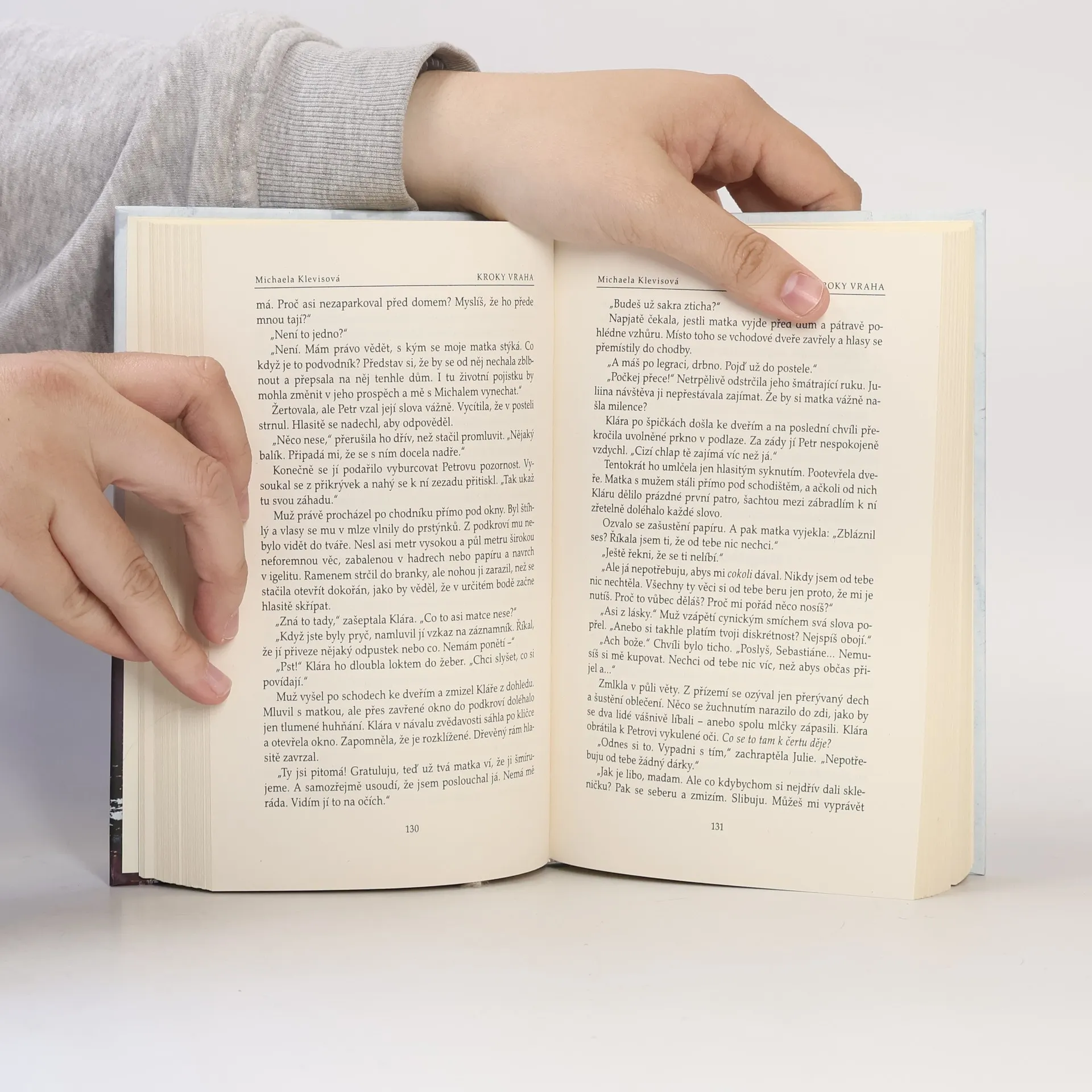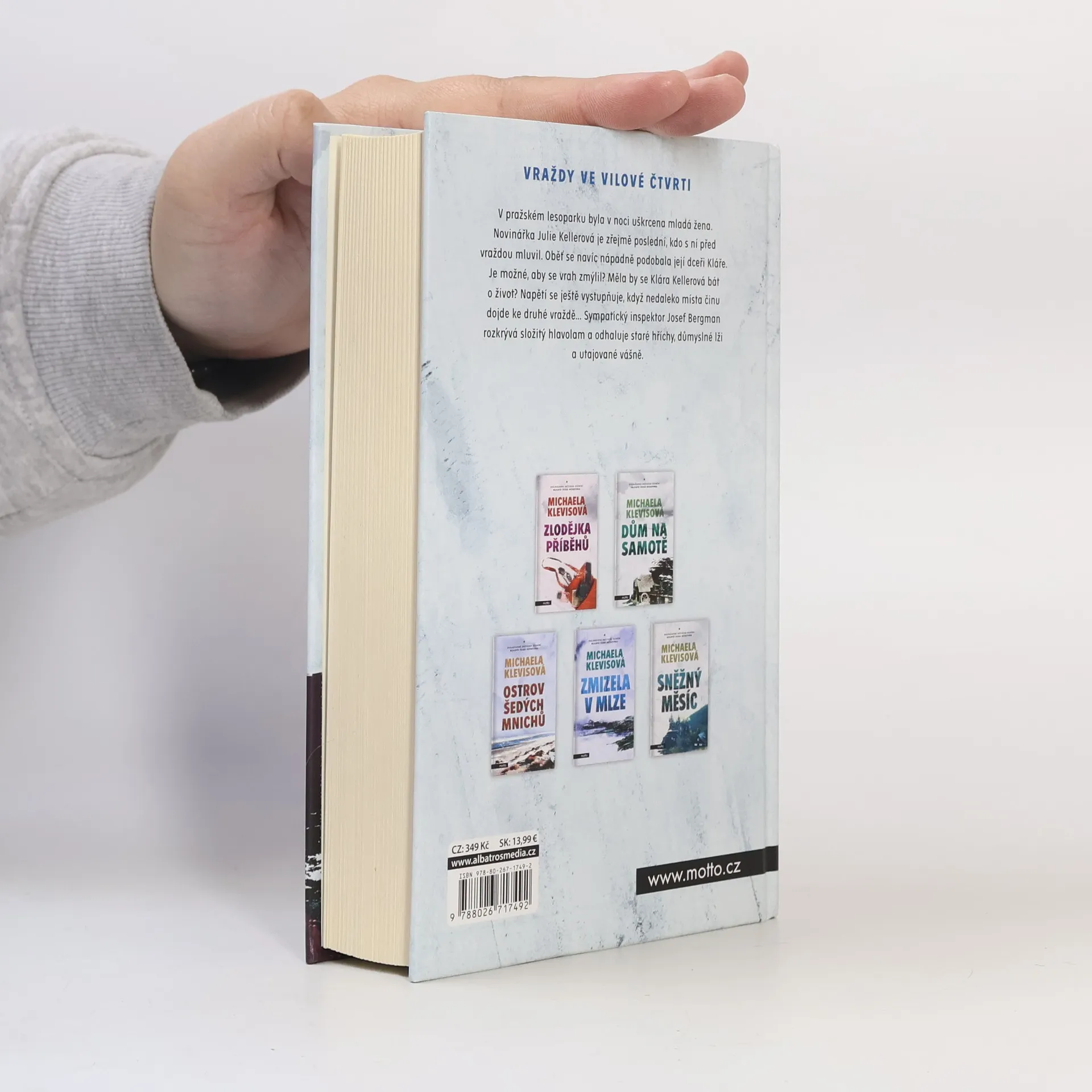 Nový případ inspektora Josefa Bergmana! Nový případ inspektora Josefa Bergmana! V pražském lesoparku byla v noci uškrcena mladá žena. Novinářka Julie Kellerová je zřejmě poslední, kdo s ní před vraždou mluvil. Oběť se navíc nápadně podobala její dceři Kláře. Je možné, aby se vrah zmýlil? Měla by se Klára Kellerová bát o život? Napětí se ještě vystupňuje, když nedaleko místa činu dojde ke druhé vraždě… Sympatický inspektor Josef Bergman rozkrývá složitý hlavolam a odhaluje staré hříchy, důmyslné lži a utajované vášně. Michaela Klevisová (*1976 v Praze) Vystudovala žurnalistiku na Fakultě sociálních věd Univerzity Karlovy a od roku 1997 pracuje jako novinářka. Jejím největším koníčkem je cestování a psaní reportáží z míst, která navštívila. Její prvotina Kroky vraha (2007) sklidila mimořádný úspěch a dostala za ni Cenu Jiřího Marka. Úspěšný byl i její druhý detektivní román Zlodějka příběhů (2009) a také třetí, Dům na samotě (2011), který jí vynesl opět Cenu Jiřího Marka. Zatím posledním detektivním románem je Ostrov šedých mnichů (2015). Kromě detektivních příběhů vydala také dvě knihy příběhů o kočkách Čekání na kocoura (2012)a Kocour z Montmartru (2013).