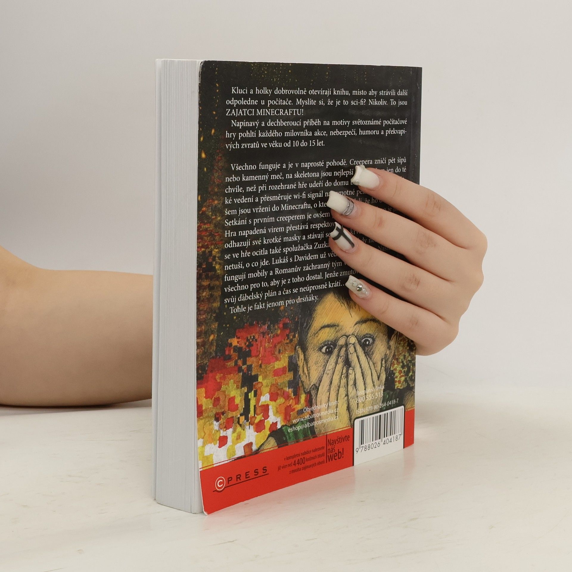 Kluci a holky dobrovolně otvírají knihu, místo aby strávili další odpoledne u počítače. Myslíte si, že je to sci-fi? Nikoliv. To jsou ZAJATCI MINECRAFTU! Napínavý a dech beroucí příběh na motivy světoznámé počítačové hry pohltí každého milovníka akce, nebezpečí, humoru a překvapivých zvratů ve věku od 10 do 15 let. Všechno funguje a je v naprosté pohodě. Creepera zničí pět šípů nebo kamenný meč, na skeletona jsou nejlepší šípy. Ovšem jen do té chvíle, než při rozehrané hře udeří do domu blesk, zkratuje elektrické vedení a přesměruje wi-fi signál na samotné peklo. David s Lukášem jsou vrženi do Minecraftu, o kterém si mysleli, že ho dobře znají. Setkání s prvním creeperem je ovšem přesvědčí, že všechno je jinak. Hra napadená virem přestává respektovat původní pravidla, mobové odhazují své krotké masky a stávají se z nich krvelačné bestie. První vydání. ISBN pro soubor 978-80-264-0870-3