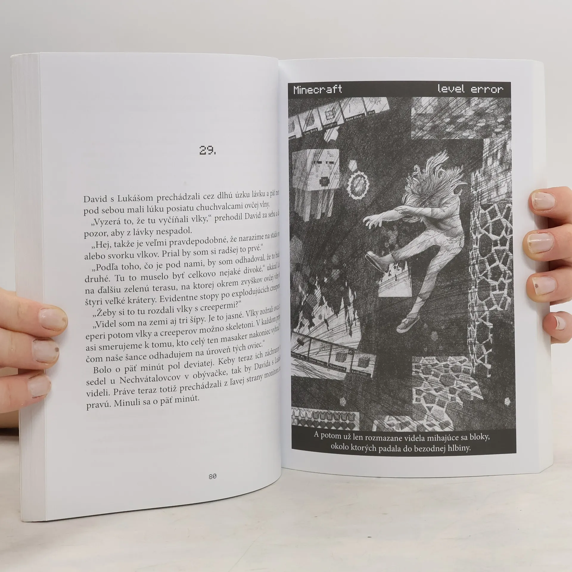 Chlapci a dievčatá dobrovoľne otvárajú knihu, namiesto aby strávili ďalšie popoludnie pri počítači. Myslíte si, že je to sci-fi ? Nie. To sú Zajatci Minecraftu! Napínavý a dychberúci príbeh na motívy svetoznámej počítačovej hry pohltí každého milovníka akcie, nebezpečenstva, humoru a prekvapivých zvratov vo veku od 10 do 15 rokov. Všetko funguje a je v úplnej pohode. Creepera zničí päť šípov alebo kamenný meč, na skeletona sú najlepšie šípy. Avšak len do tej chvíle, než pri rozohranej hre udrie do domu blesk, skratuje elektrické vedenie a presmeruje wi-fi signál na samotné peklo. David s Lukášom sú vrhnutí do Minecraftu, o ktorom si mysleli, že ho dobre poznajú. Stretnutie s prvým creeperom ich však presvedčí, že všetko je inak. Hra napadnutá vírusom prestáva rešpektovať pôvodné pravidlá, mobovia odhadzujú svoje krotké masky a stávajú sa z nich krvilačné beštie. Navyše sa v hre ocitla aj spolužiačka Zuzka, ktorá ju nikdy nehrala a vôbec netuší, o čo ide. Lukáš s Davidom už vedia, že ide o život. Našťastie im fungujú mobily a Romanov záchranný tím v obývačke pri laptope robí všetko pre to, aby ich z toho dostal. Lenže zmutovaní endermani majú svoj diabolský plán a čas sa neúprosne kráti... Toto je fakt len pre drsných.