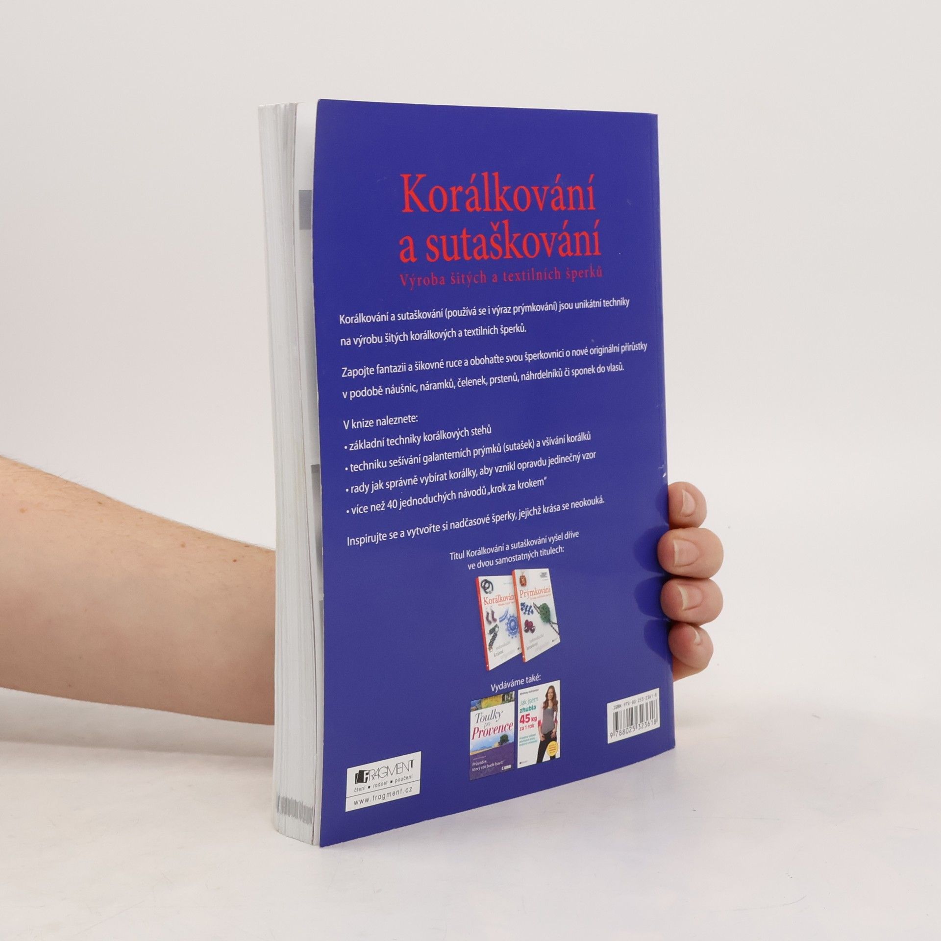 Korálkování a sutaškování (používá se i výraz prýmkování) jsou unikátní techniky na výrobu šitých a textilních šperků. Zapojte fantazii a šikovné ruce a obohaťte svou šperkovnici o nové originální přírůstky v podobě náušnic, náramků, čelenek, prstenů, náhrdelníků či sponek do vlasů. * základní techniky korálkových stehů * jak správně vybrat korálky, aby vznikl opravdu zajímavý a nápaditý vzor * technika sešívání korálků a galanterních prýmků, takzvaných sutašek * jednoduché postupy "krok za krokem" Inspirujte se a vytvořte si nadčasové šperky, jejichž krása se neokouká.