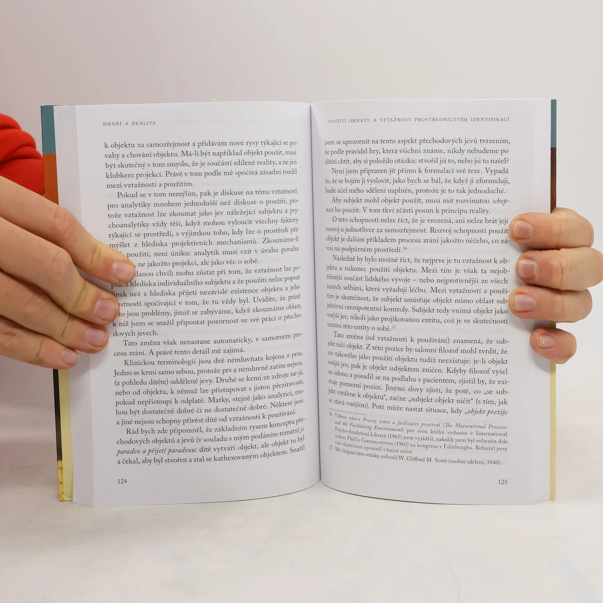Jaké má tvořivost kořeny a jak je můžeme rozvíjet, ať už v sobě nebo ve druhých? Kniha odpovídá nejen na tyto otázky, ale věnuje se základním tématům individuálního já a jeho vztahu s vnějším světem. Po představení teorie přechodového objektu a přechodových jevů Winnicott líčí, jak se v podpůrném prostředí při dostatečně dobré péči matky či mateřské postavy rozvíjí vědomí vlastního já, jeho vymezení vůči vnějšímu světu a co se odehrává v prostoru mezi vnitřní subjektivní a vnější objektivně vnímanou realitou. Zabývá se i situacemi, kdy dochází k narušení tohoto vývoje. Významná z hlediska vývoje psychoanalytické teorie je kapitola o použití objektu, tedy nejen o způsobu, jakým se subjekt k objektu vztahuje, ale jak ho používá a co toto používání umožňuje či co mu brání. Pokračuje tím, jak se prostor mezi matkou a dítětem, mezi já a ne-já stává základem kulturní zkušenosti člověka, potenciálním prostorem pro jeho tvůrčí aktivity a žití samé. Teorii přechodových objektů a přechodových jevů rozšiřuje o zamyšlení nad tvořivostí, skrytou rivalitou mužského a ženského prvku v osobnosti a pojetí kultury v širším slova smyslu. Teoretické koncepty jsou dokreslovány příklady z autorovy terapeutické praxe s dětmi i dospělými klienty. Doslov MUDr. Vladimír Vavrda.