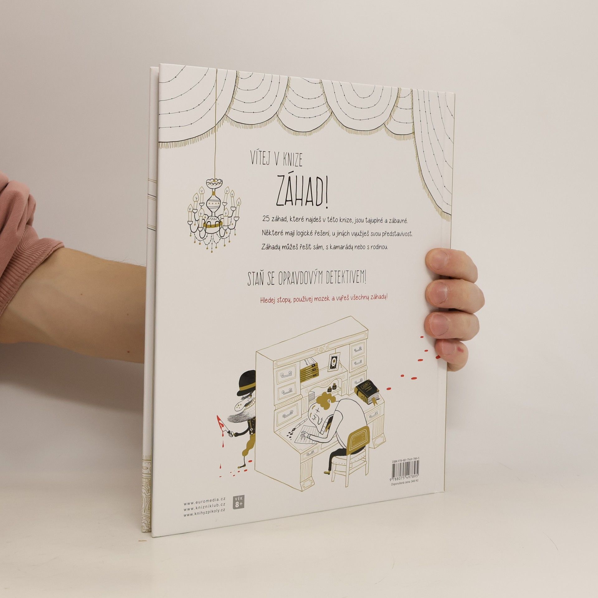 Neexistuje kniha, která by tě bavila víc, detektive. Vítej v knize záhad! Přijdeš na kloub 25 tajuplným případům? Některé mají logické řešení, u jiných využiješ své představivosti. A hlavně – hledej v zábavných obrázcích, a stopu máš nadosah. Záhady můžeš řešit sám, s kamarády nebo s celou rodinou. Staň se opravdovým detektivem! Hledej stopy, používej mozek a vyřeš všechny záhady. Věnováno dětem od 8 let a jejich rodičům, kteří mají chuť přicházet na kloub záhadám.