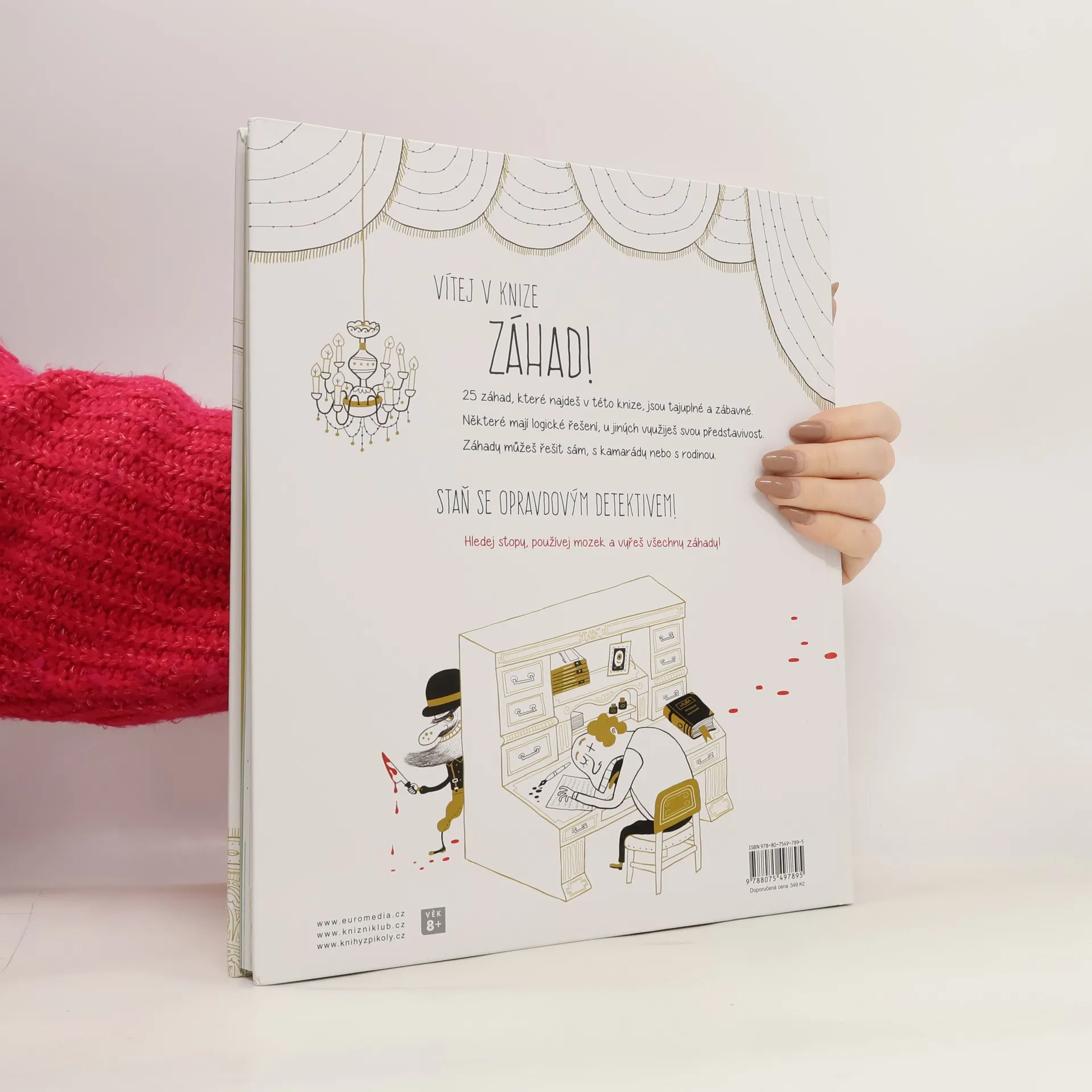 Neexistuje kniha, která by tě bavila víc, detektive. Vítej v knize záhad! Přijdeš na kloub 25 tajuplným případům? Některé mají logické řešení, u jiných využiješ své představivosti. A hlavně – hledej v zábavných obrázcích, a stopu máš nadosah. Záhady můžeš řešit sám, s kamarády nebo s celou rodinou. Staň se opravdovým detektivem! Hledej stopy, používej mozek a vyřeš všechny záhady. Věnováno dětem od 8 let a jejich rodičům, kteří mají chuť přicházet na kloub záhadám.