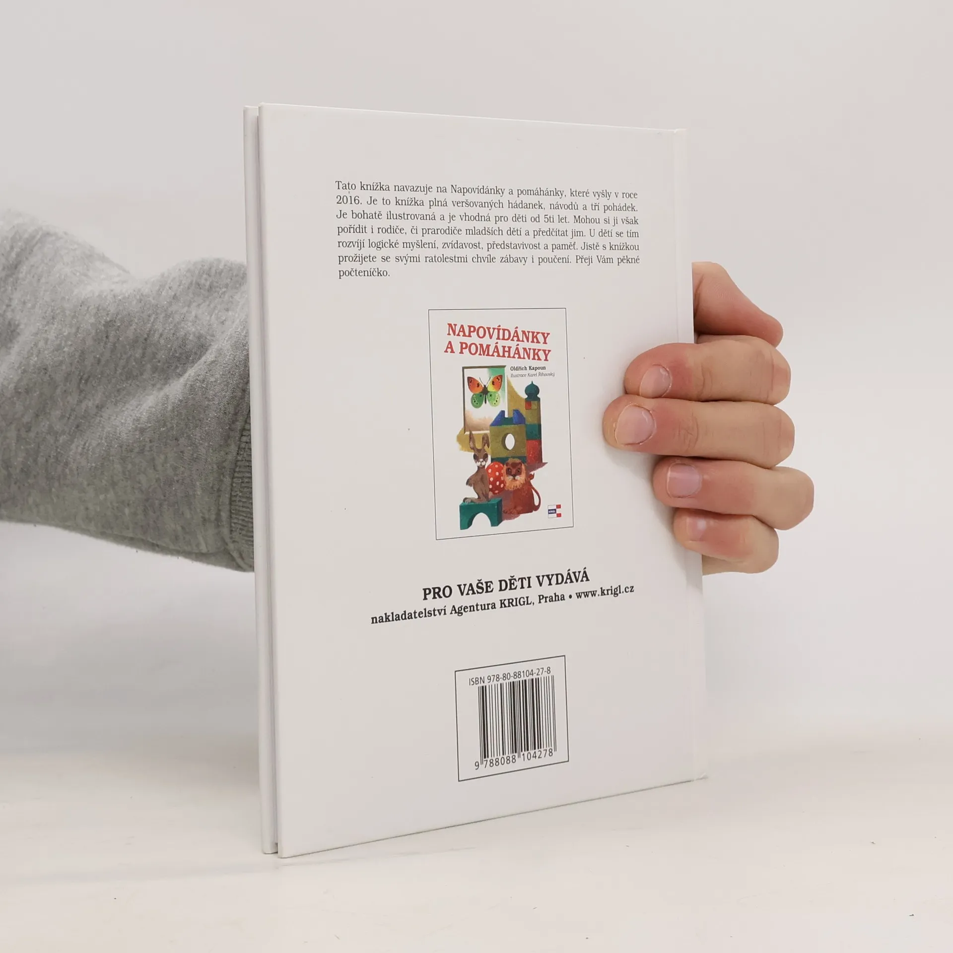 Tato kniha navazuje na Napovídánky a pomáhánky, které vyšly v roce 2016. Je to knížka plná veršovaných hádanek, návodů a tří pohádek. Je bohatě ilustrovaná a je vhodná pro děti od 5ti let. Mohou si ji však pořídit i rodiče, či prarodiče mladších dětí a předčítat jim. U dětí se tím rozvíjí logické myšlení, zvídavost, představivost a paměť. Jistě s knížkou prožijete se svými ratolestmi chvíle zábavy i poučení. Přeji Vám pěkné počteníčko.