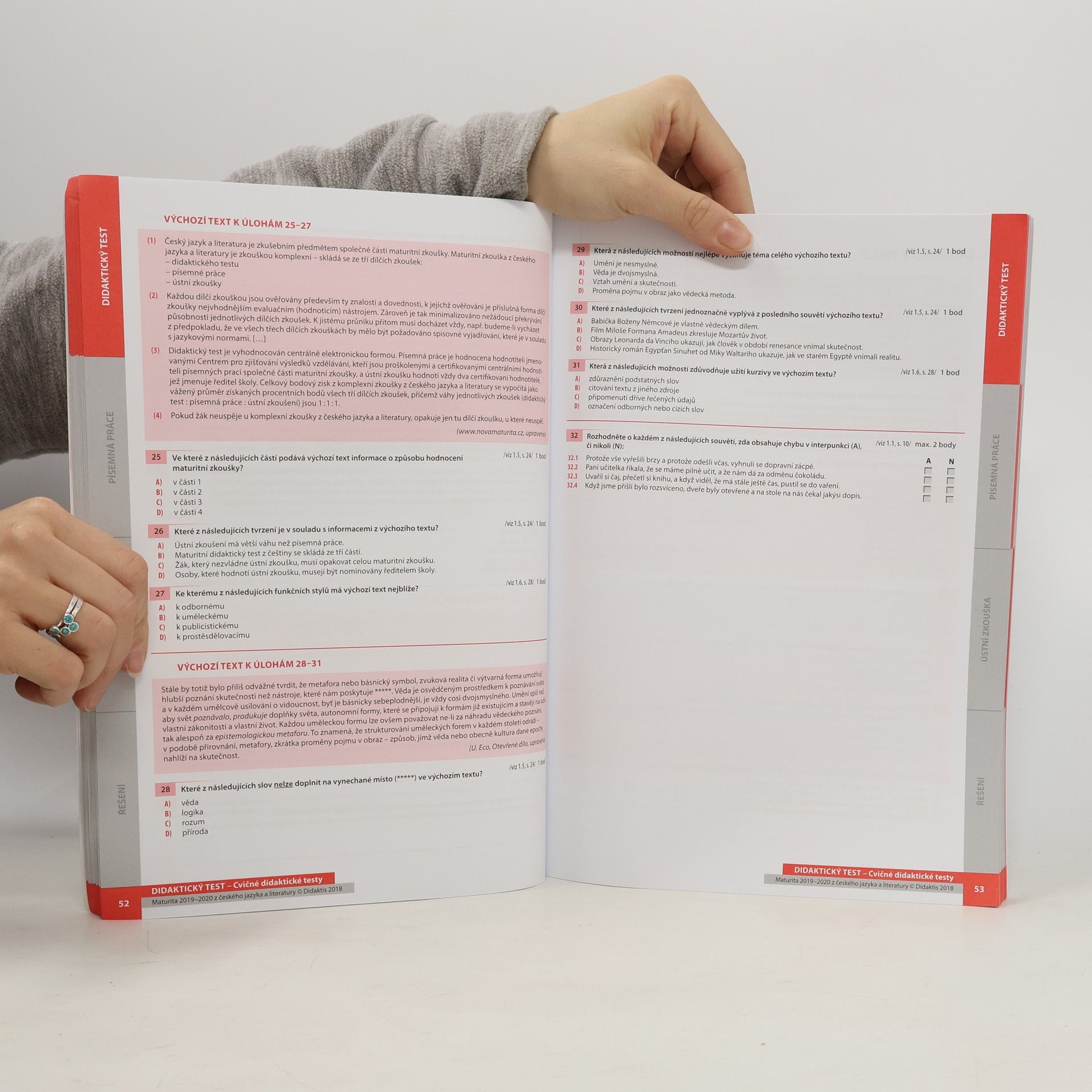 Komplexní příprava na didaktický test, písemnou práci i ústní zkoušku s nápovědou, řešením a vyhodnocením.