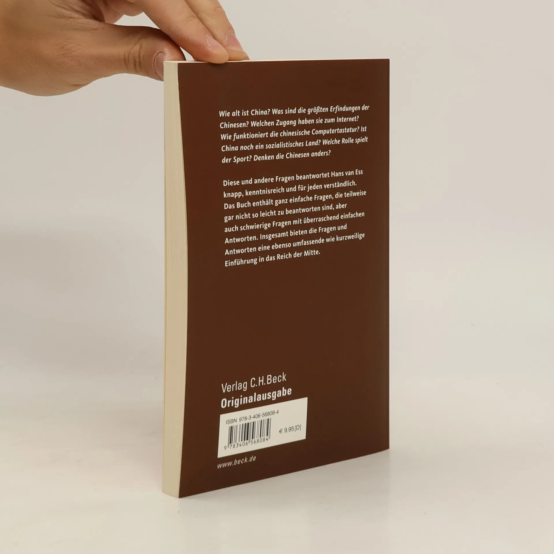 Wie alt ist China? - Ist China noch ein sozialistisches Land? - Welchen Zugang haben Chinesen zum Internet? - Wie funktioniert die chinesische Computertastatur? - Was sind die größten Erfindungen Chinas? - Welche Rolle spielt der Sport? - Denken die Chinesen anders? - Muß man darauf achten, daß Chinesen ihr Gesicht nicht verlieren? - Diese und andere Fragen beantwortet Hans van Ess knapp, kenntnisreich und für jeden verständlich. Insgesamt bieten die Fragen und Antworten eine ebenso umfassende wie kurzweilige Einführung in das Reich der Mitte.