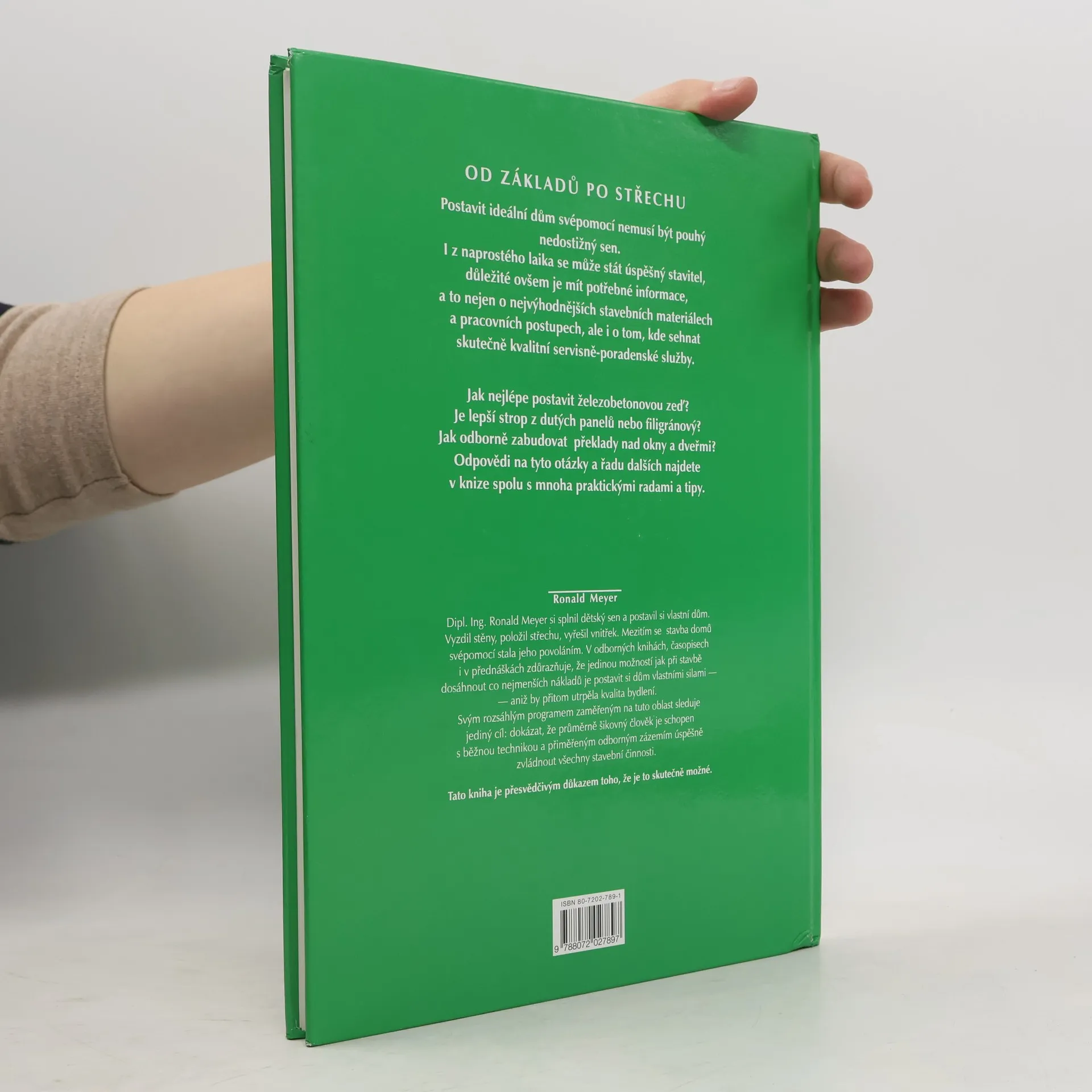 Od základů po střechu. Postavit ideální dům svépomocí nemusí být nedostižný sen. I z naprostého laika se může stát úspěšný stavitel. Důležité je, aby měl potřebné informace, a to nejen o nejvýhodnějších stavebních materiálech a pracovních postupech, ale i o třeba tom, kde sehnat kvalitní servisně poradenské služby. Jak postavit železobetonovou zeď? Je lepší strop z dutých panelů nebo filigránový? Jak odborně zabudovat překlady nad okny a dveřmi? Odpovědi a spolu s nimi praktické rady a tipy najdete v této celobarevné publikaci.