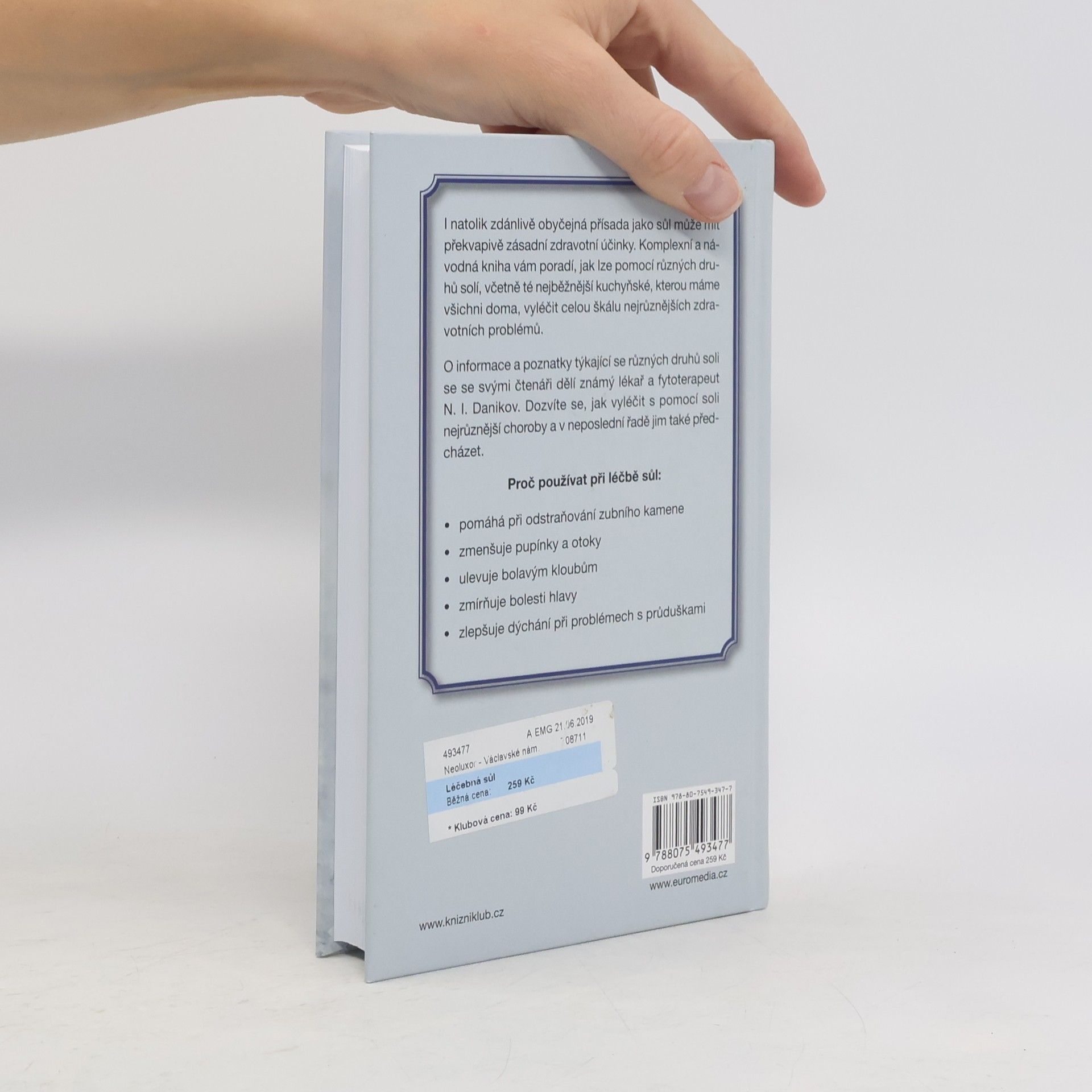 Sůl je nejen nejrozšířenější dochucovadlo, ale dokáže zároveň významně pomoci našemu zdraví. Její správné užívání pomáhá předcházet nemocem oběhové soustavy, jater, kloubů či srdečnímu infarktu. Přední odborník N. I. Danikov vás v knize provede úžasnými možnostmi, které sůl při samoléčbě a prevenci nabízí. Zjistíte, že sůl je opravdu nad zlato!