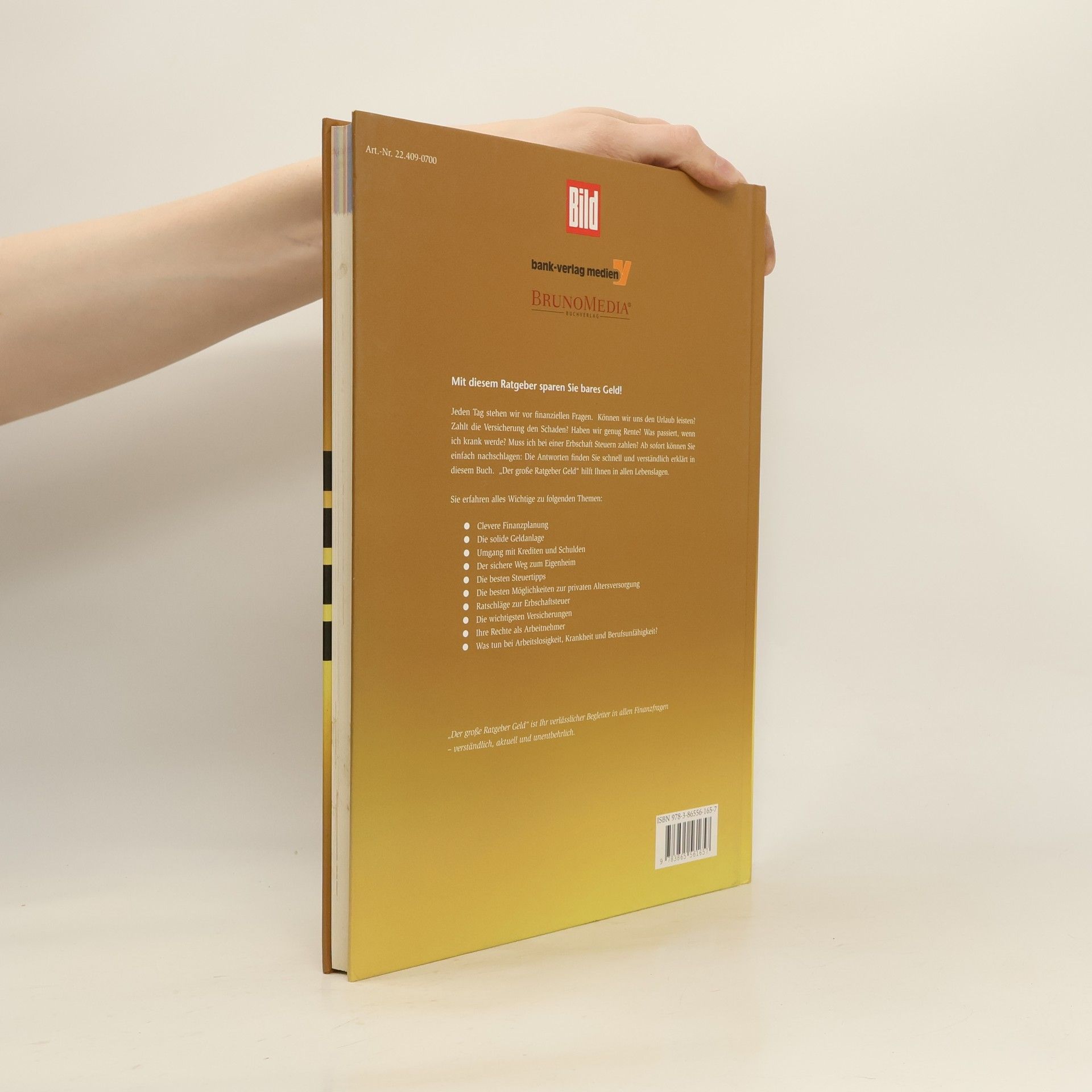 Der Große Ratgeber Geld bietet dem Verbraucher solides Wissen, über das jeder verfügen muss, um verantwortungsvoll mit Geld umgehen zu können. Es beantwortet Geldfragen, die sich alltäglich stellen, wie zum Beispiel: Können wir uns den Urlaub leisten? Zahlt die Versi-cherung den Schaden? Haben wir genug Rente? Was passiert, wenn ich krank werde? Muss ich bei einer Erbschaft Steuern zahlen? Sehr übersichtlich aufbereitet und versehen mit zahl-reichen Beispielen, Abbildungen, Internetlinks und weiterführenden nützlichen Adressen ist der Große Ratgeber Geld ein unentbehrlicher Begleiter in allen Finanzfragen.